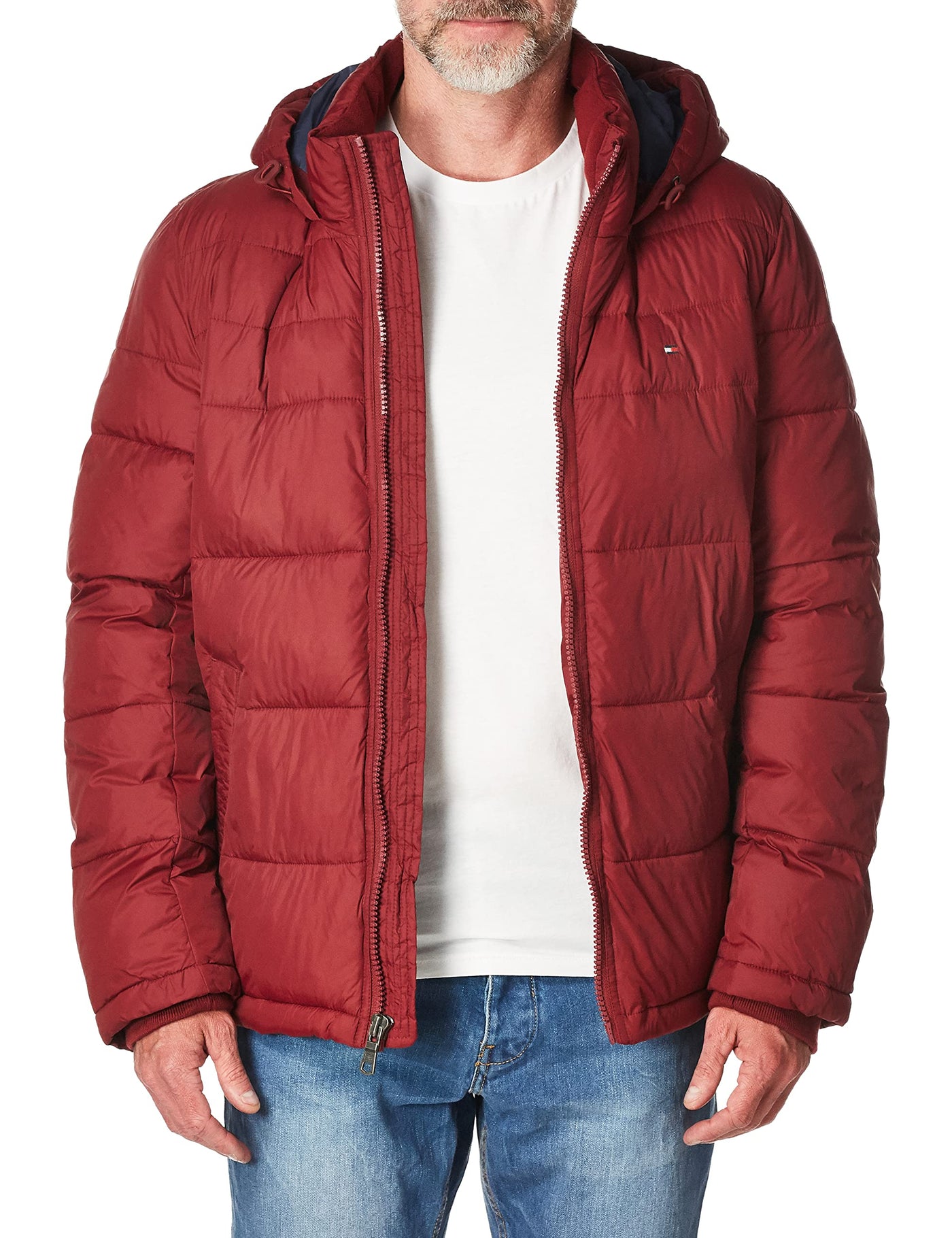 Tommy Hilfiger Mens Big Tall Hooded Puffer Jacket, Red, 3X Big
