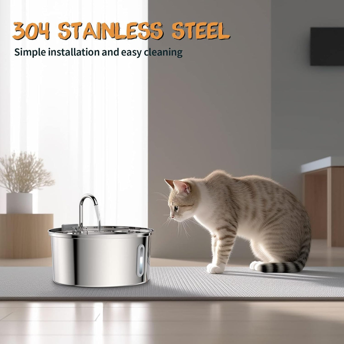 Tomxcute Cat Water Fountain,Stainless Steel Cat Fountain 3.2L/108Oz Automatic Pet Fountain With Water Levels Window,Ultra-Quiet