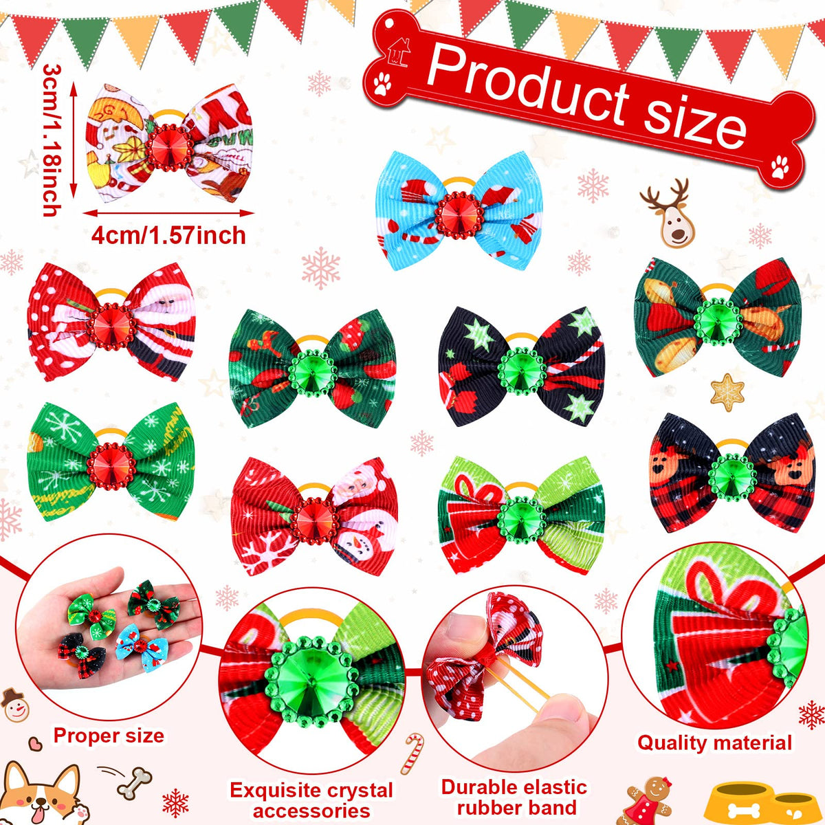 Tondiamo 100 Pack Christmas Dog Bows For Dogs Christmas Hair Bows With Rubber Bands Puppy Hair Bows Rhinestone Dog Bows Grooming