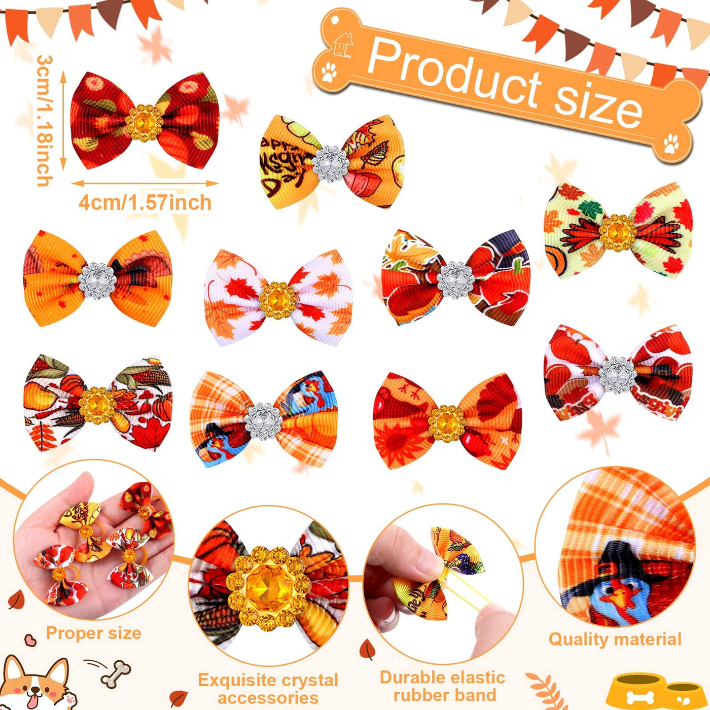 Tondiamo 100 Pack Fall Dog Hair Bows For Thanksgiving Day Dog Hair Bows With Rubber Bands Puppy Rhinestone Grooming Pumpkin Turk