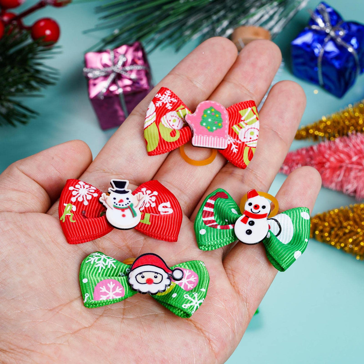Tongcloud 20Pcs Pets Dog Hair Bows For Christmas With Rubber Bands Dog Bows Bowknot Snowman Christmas Dog Bows Snowman Dog Bows(Red And Green, Christmas Style)
