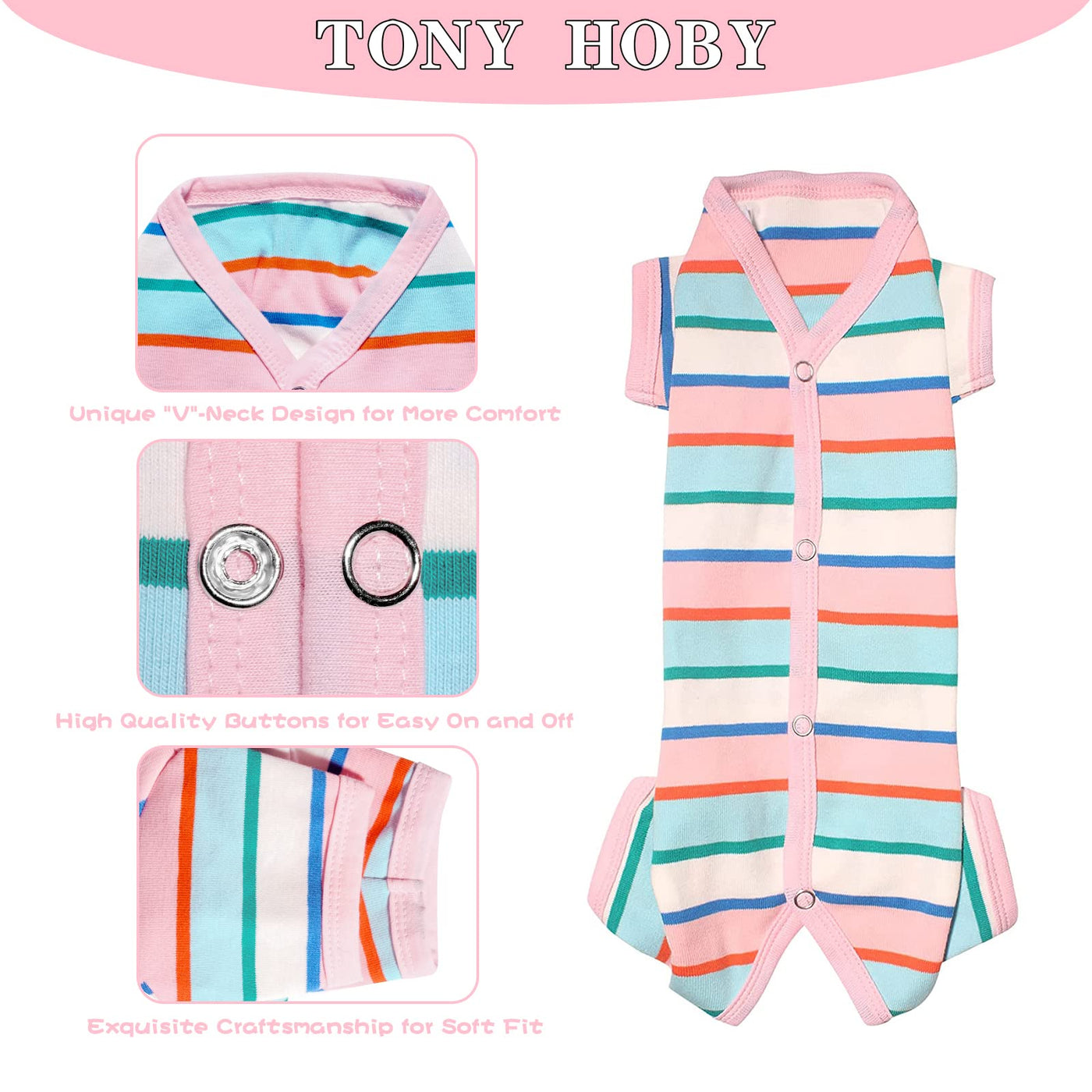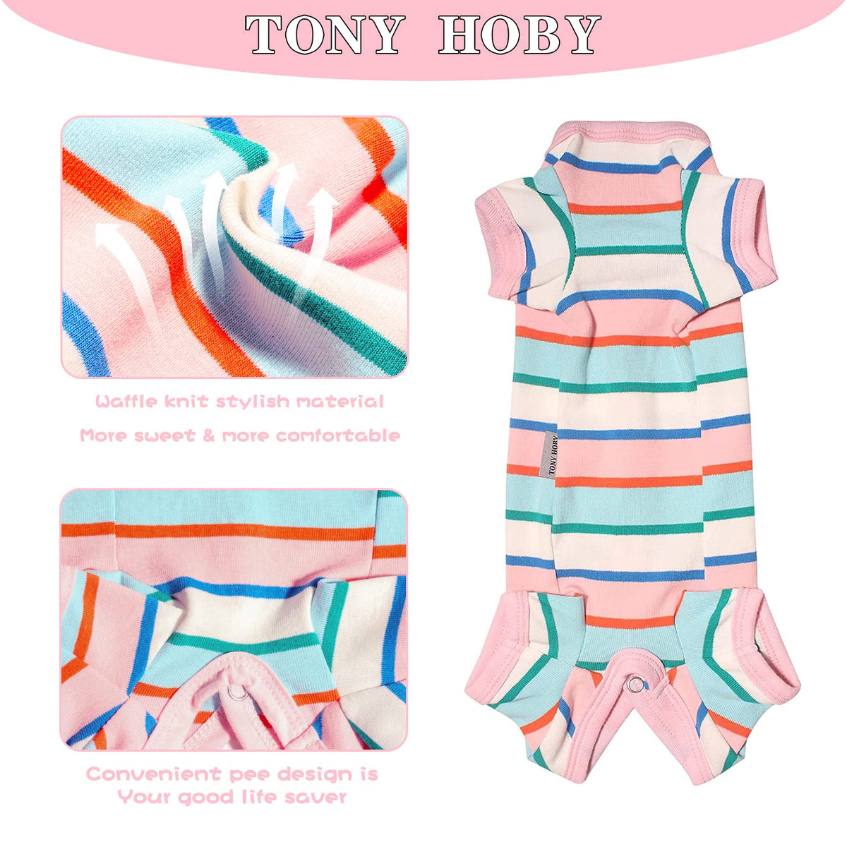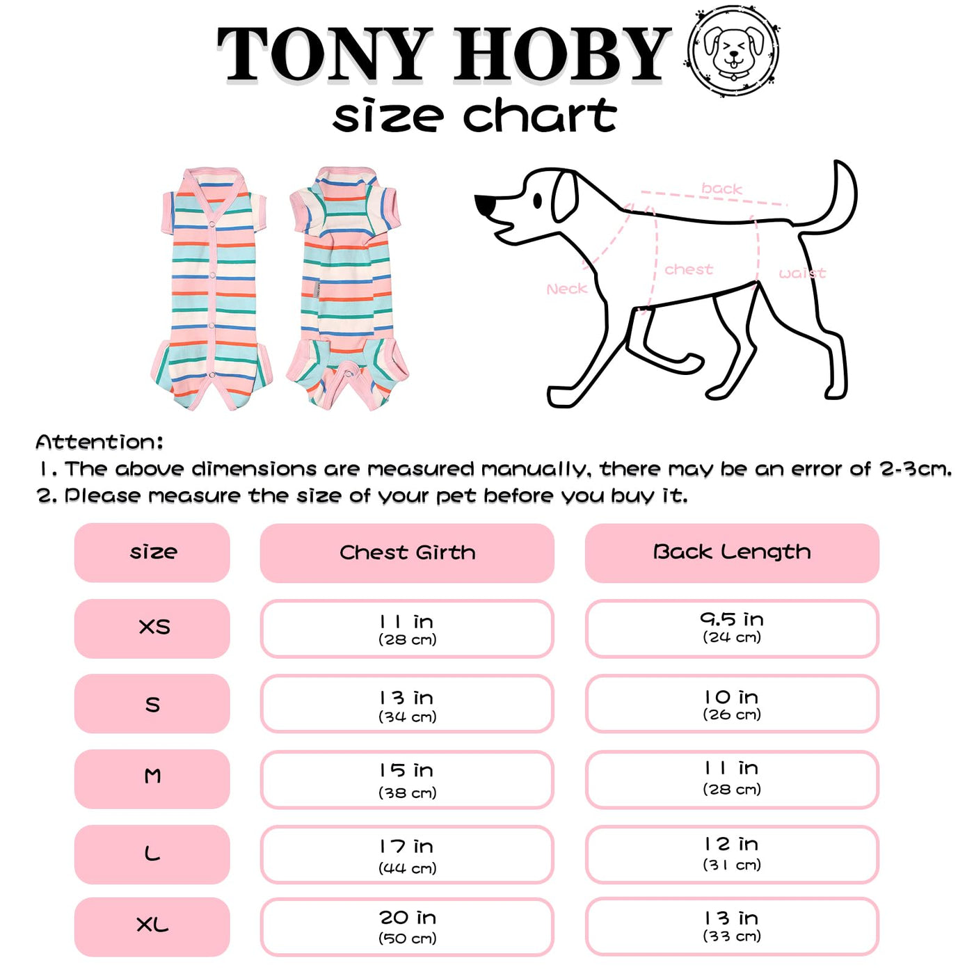 ?Unique Design?-TONY HOBY Female/Male Dog Pajamas has a unique design for men and women focusing on protecting the dog 's abdomen; and using metal buttons easy to wear; unique four-leg design elastic waist and with bright stripes beautiful and fashionable