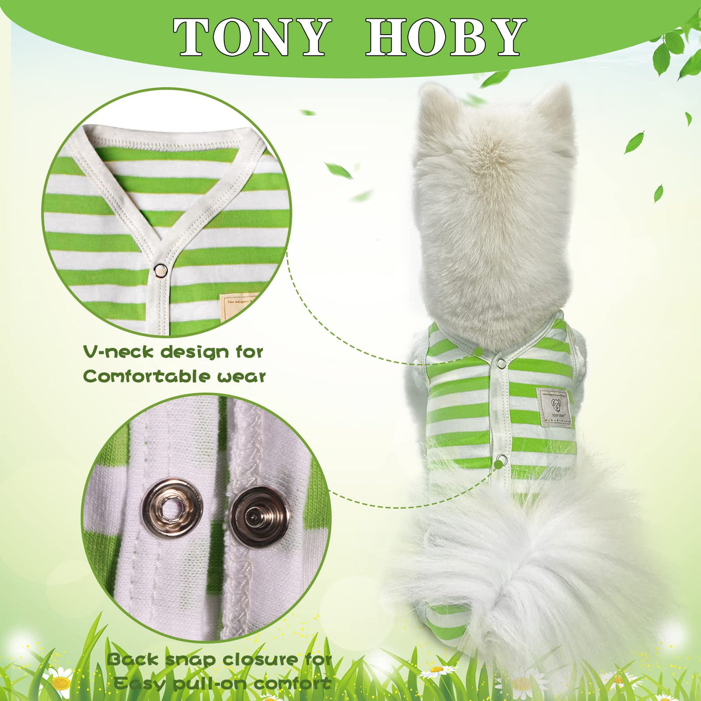 Tony Hoby Dog Summer Sleeveless Pajamas, Dog Jumpsuit With Stripes (White&Green, L)