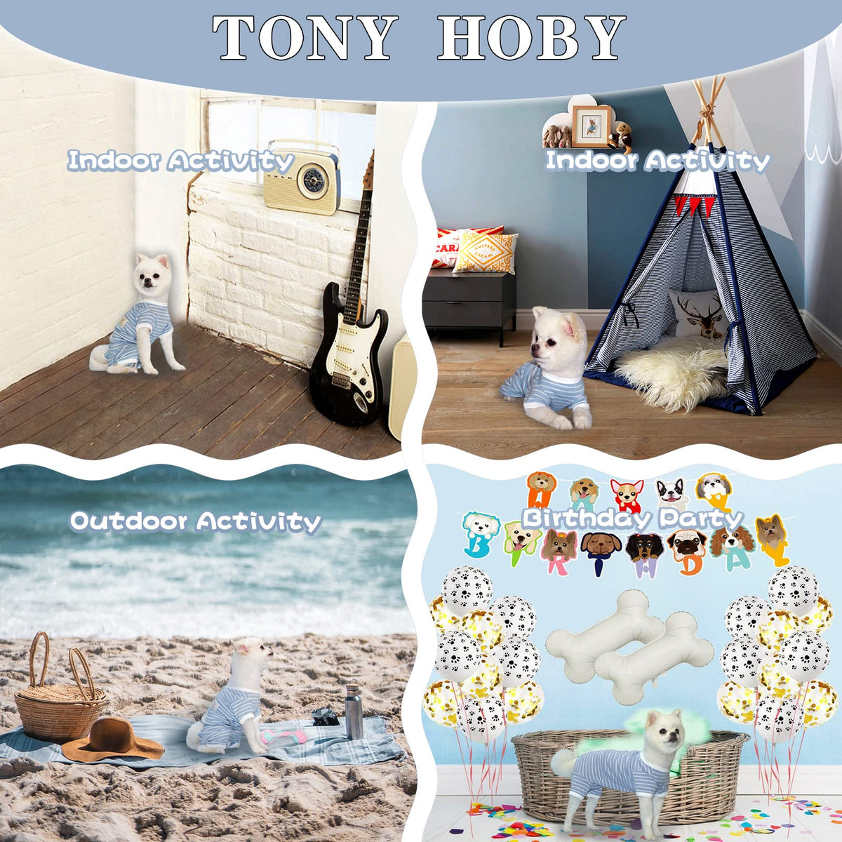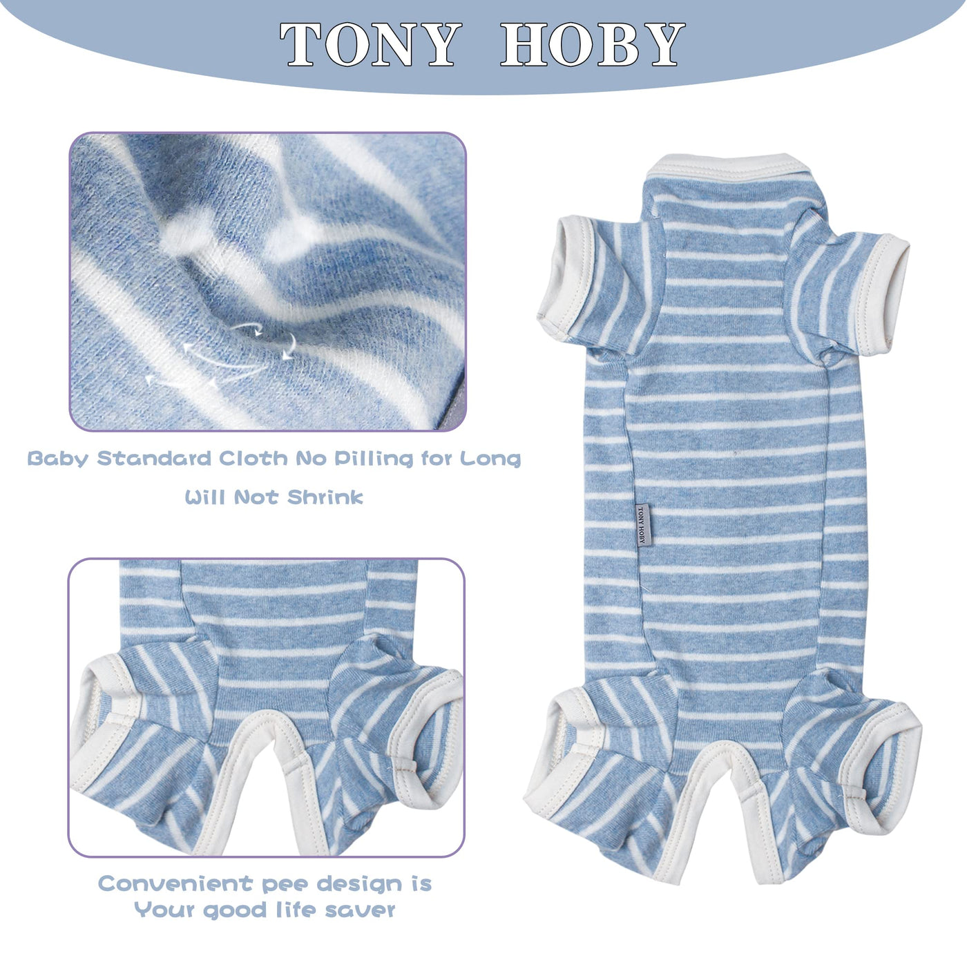 Q: What materials are used in the TONY HOBY Dog Pajamas?A: The pajamas are made of soft and breathable cotton, which is comfortable for your pet to wear. The material is completely handmade, ensuring quality without spare threads or sewing disorder.