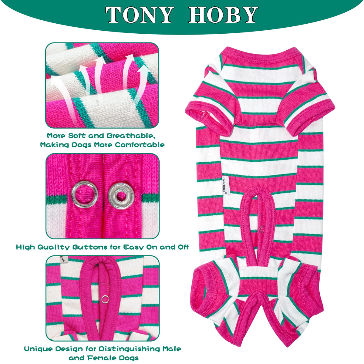 Tony Hoby Dog Pajamas - High Quality, Focus On Grasping Every Production Detail, And Give The Dog The Most Intimate Care - Buy With Confidence And Provide You With The Best Quality Products And Services Size - X-Small: Chest Girth Is 11'', Back Length Is 9.8'' - Small: Chest Girth Is 13.4'', Back Length Is 11.8'' - Medium: Chest Girth Is 14.2'', Back Length Is 13'' - Large: Chest Girth Is 16.5'', Back Length Is 14.6'' - X-Large: Chest Girth Is 20.5'', Back Length Is 15.7'' High Quality Guarantee - Tony Hoby Dog Male/Female Pajamas Has Easy-To-Wear Buttons On The Back And Stylish Stripes For Added Accents. The Unique Four-Legged And Male And Female Dogs Are Designed Separately, Which Is Convenient For The Dog'S Daily Life - Tony Hoby Dog 4 Legged Pajamas Is Suitable For??Small And Medium-Size??Dogs, With Pink & Blue Stripes. The Soft And Compliant Fabric Is Suitable For Dogs' Daily Living Clothes Or Dog Postoperative Recovery Clothes. Suitable For All Seasons About Us - Each Product Is Carefully Selected Materials, Safety Guarantee - Each Product Is Carefully Designed To Give Dogs The Most Intimate Care