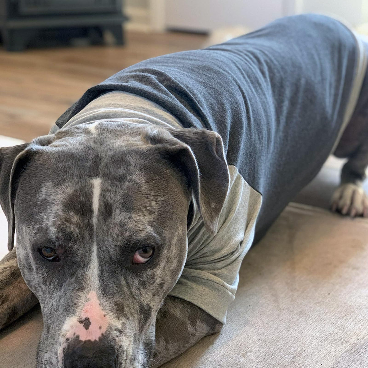 Tooth & Honey Large Dog Pullover Shirt – Breathable Cotton & Spandex Dog Shirt With Full Underbelly Coverage – Dark & Light Grey Large Dog Shirt For Allergy & Summer Protection (Large)