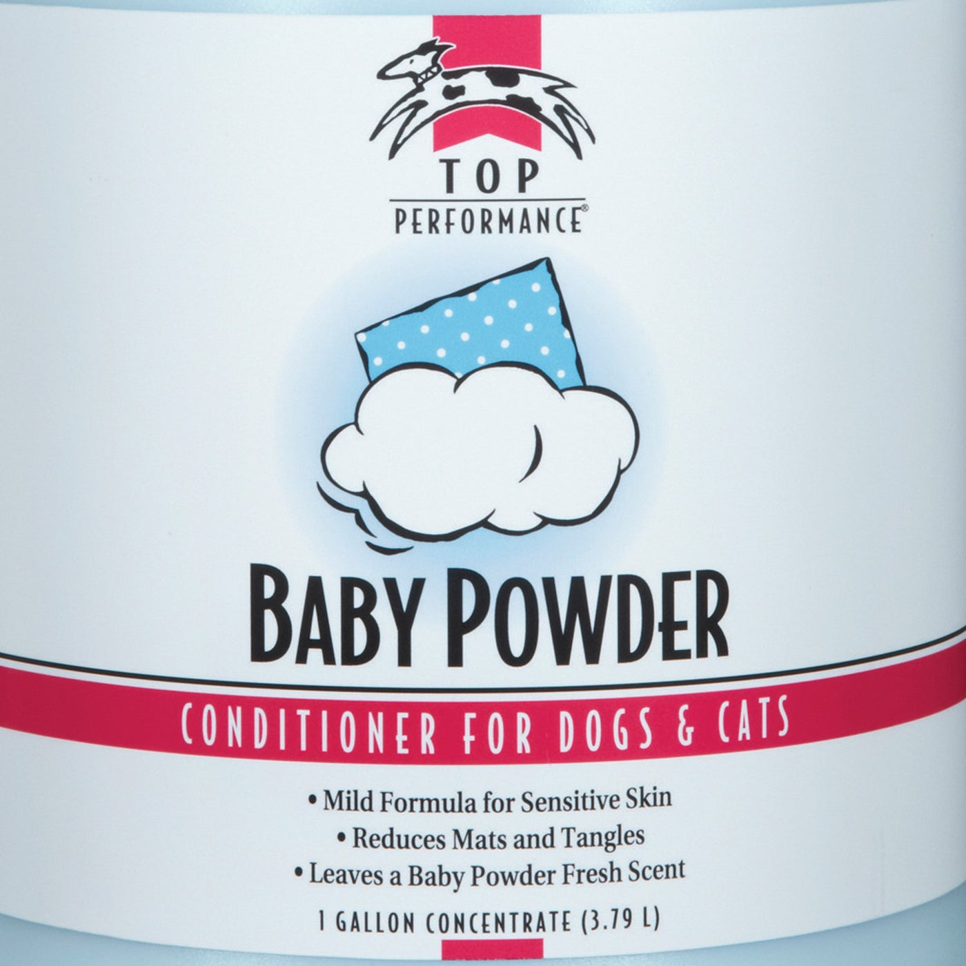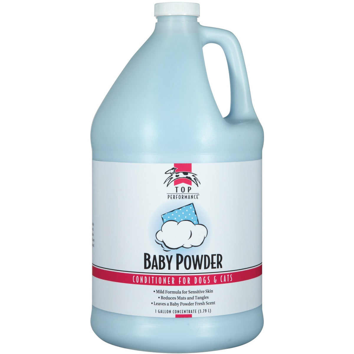 The perfect complement to Baby Powder Shampoo Top Performance Baby Powder Conditioner adds luster to pets' coats. Highly concentrated mild and luxurious conditioning formula leaves a brilliant sheen on coats and a memorable long-lasting scent. Dilutes 16:1. Fresh baby powder scent Reduces mats and tangles for easy combing Ideal for sensitive skin