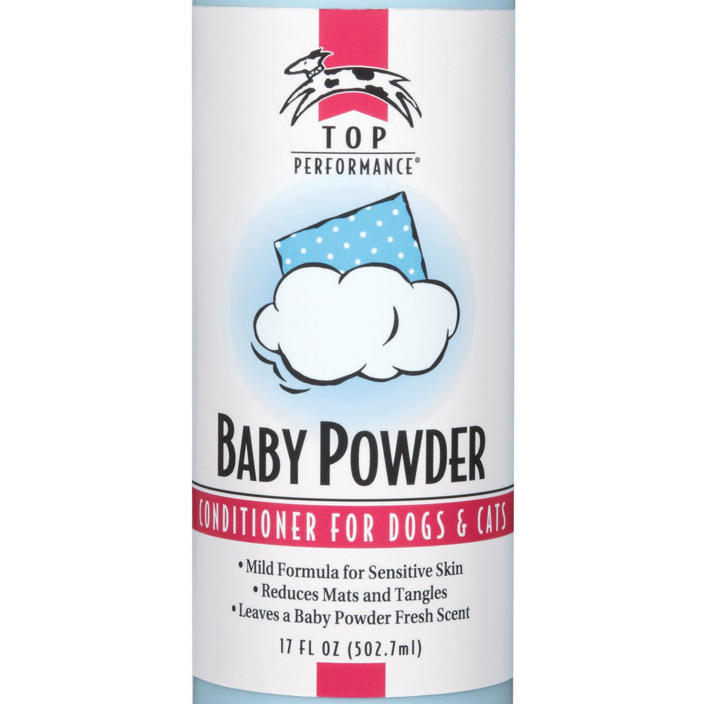 The perfect complement to Baby Powder Shampoo Top Performance Baby Powder Conditioner adds luster to pets' coats. Highly concentrated mild and luxurious conditioning formula leaves a brilliant sheen on coats and a memorable long-lasting scent. Dilutes 16:1. Fresh baby powder scent Reduces mats and tangles for easy combing Ideal for sensitive skin