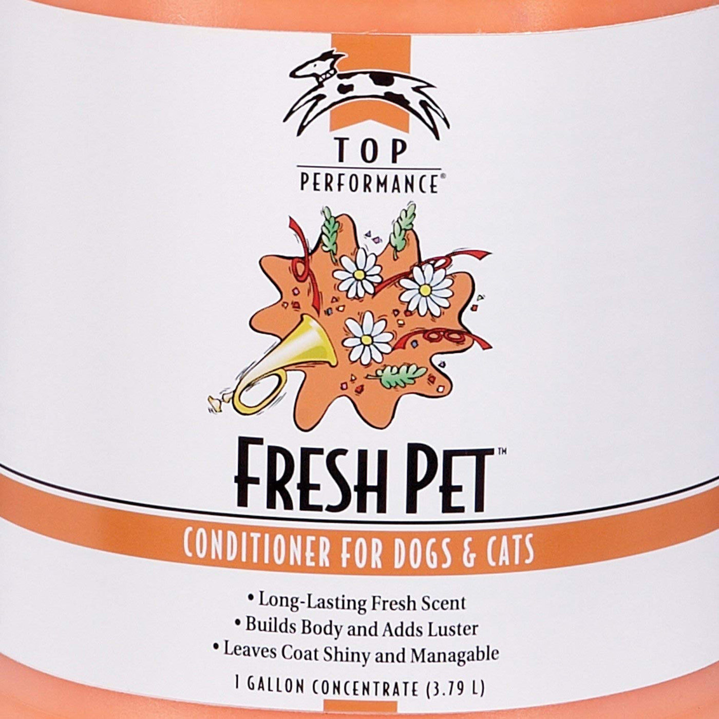 Enhance a grooming session that began with Top Performance Fresh Pet Shampoo by finishing with Top Performance Fresh Pet Conditioner.• Reduces mats and tangles for easier comb-outs• Builds body and adds luster• Rich conditioning formula gives coats a brilliant sheen and a pleasant, long-lasting fragrance• Safe for puppies and kittens over 6 weeks old• Dilutes 7:1Available in 17-oz, 1-gallon, and 2½-gallons sizes.