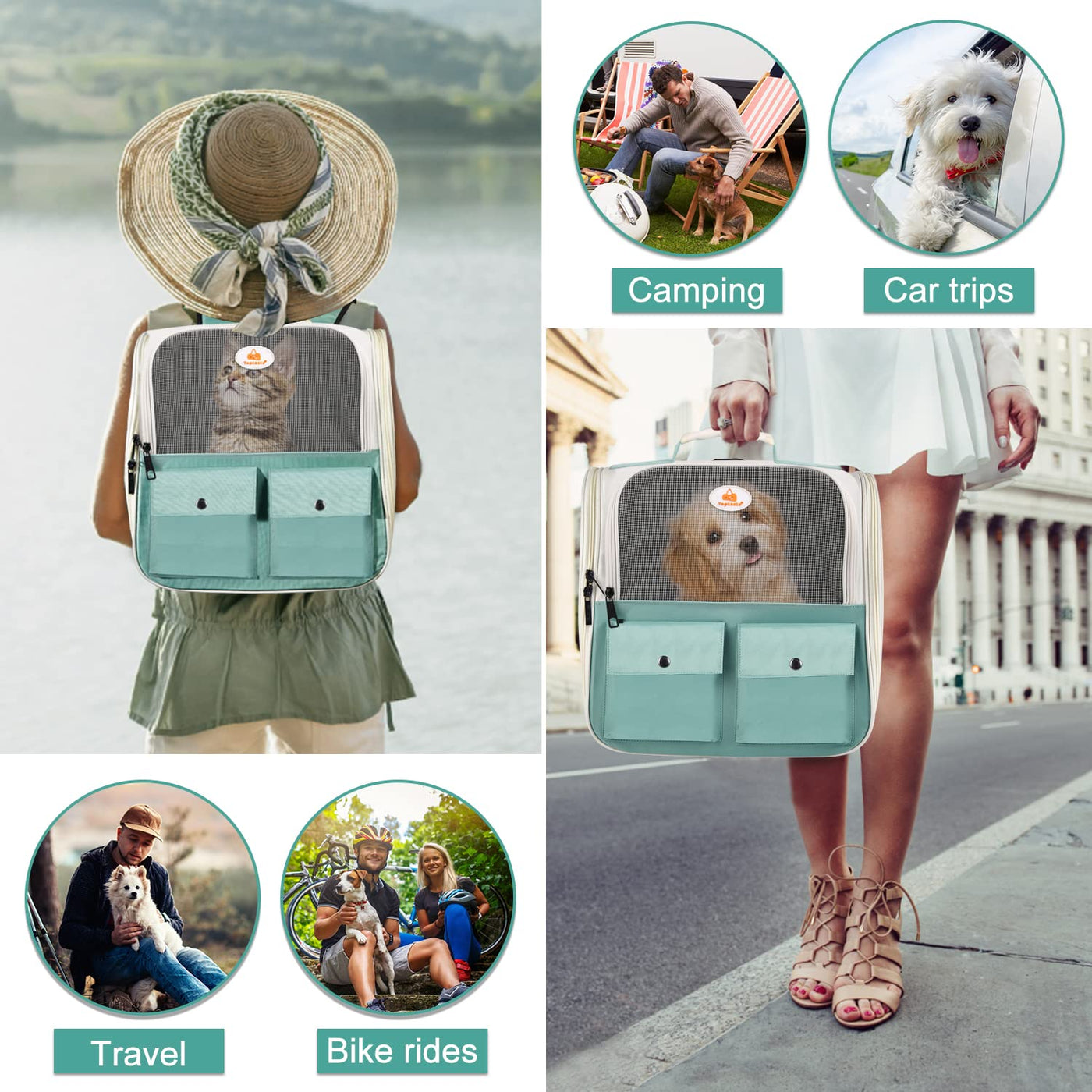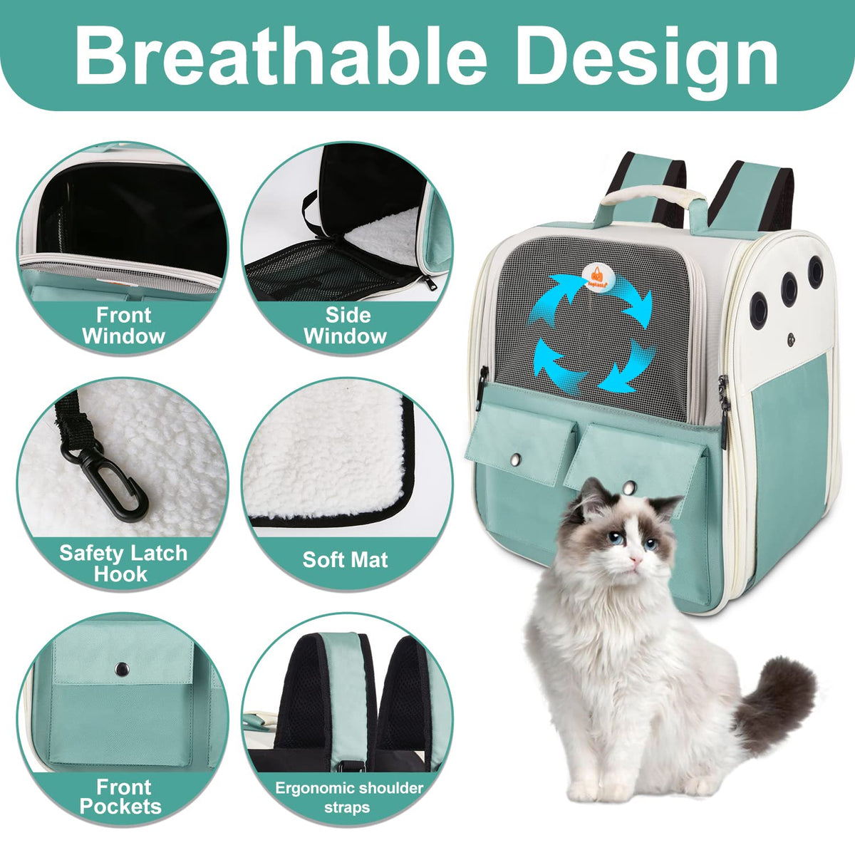 Top Tasta Cat Backpack Carrier, Airline Approved, Ventilated Design, Breathable Mesh For Small Cats And Dogs For Hiking And Camping, Carry Up To 25 Pounds (Light Blue)
