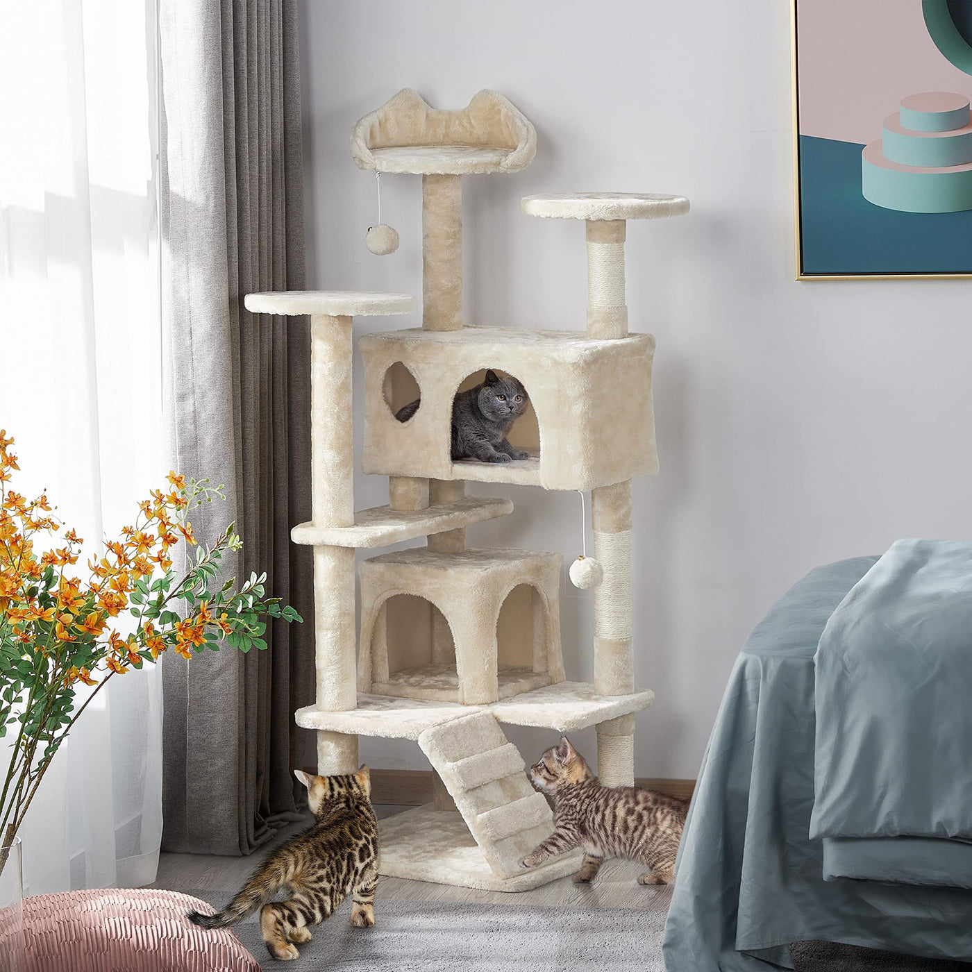 Topeakmart 54In Cat Tree, Cat Tower W/Large Cat Condo Scratching Posts And Perch, Cat Stand House Furniture, Beige