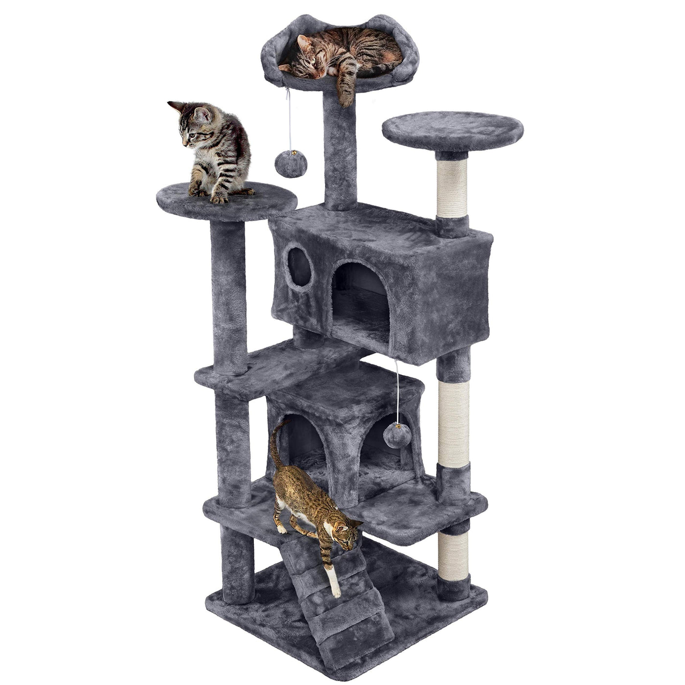 Topeakmart 54In Cat Tree, Cat Tower W/Large Cat Condo Scratching Posts And Perch, Cat Stand House Furniture, Dark Gray