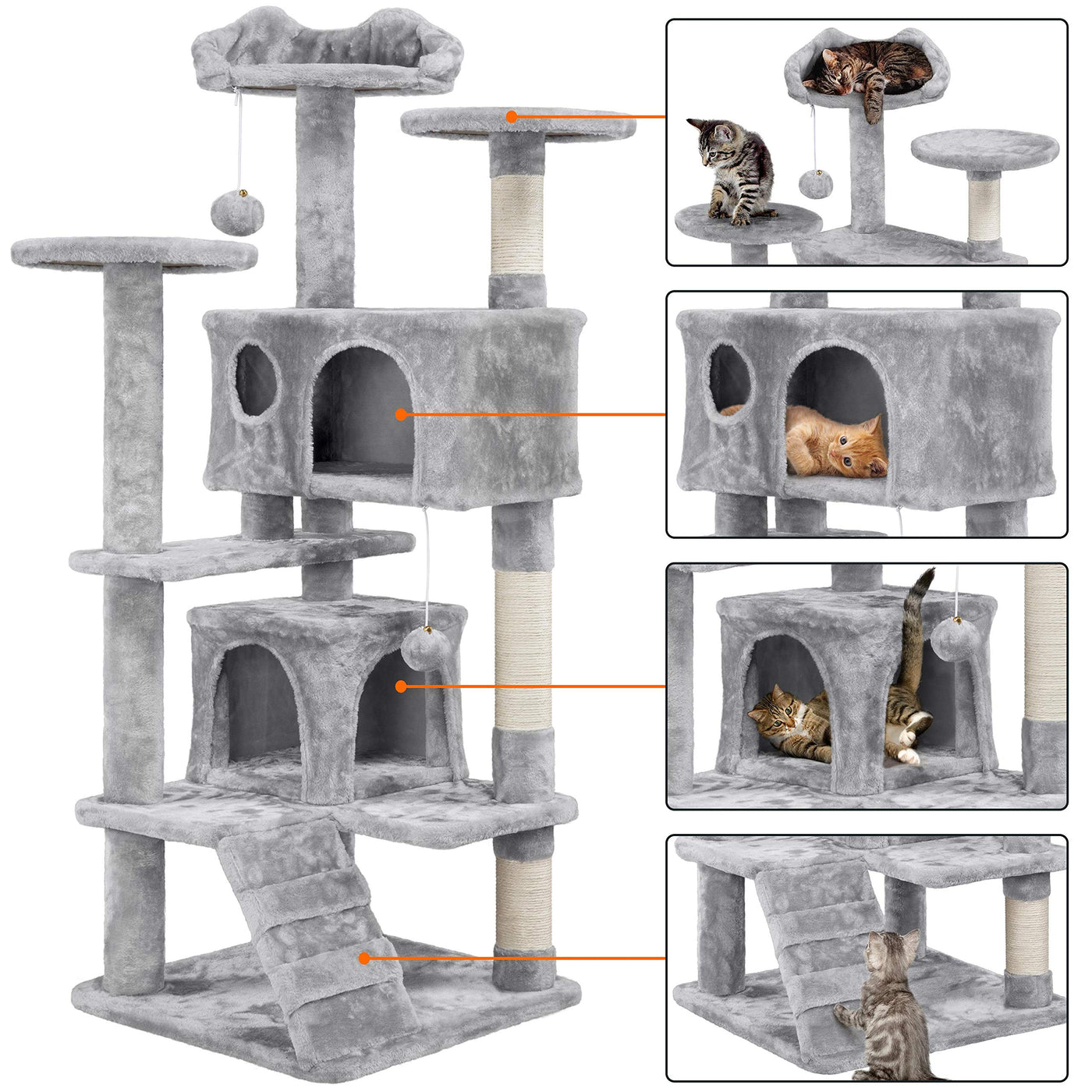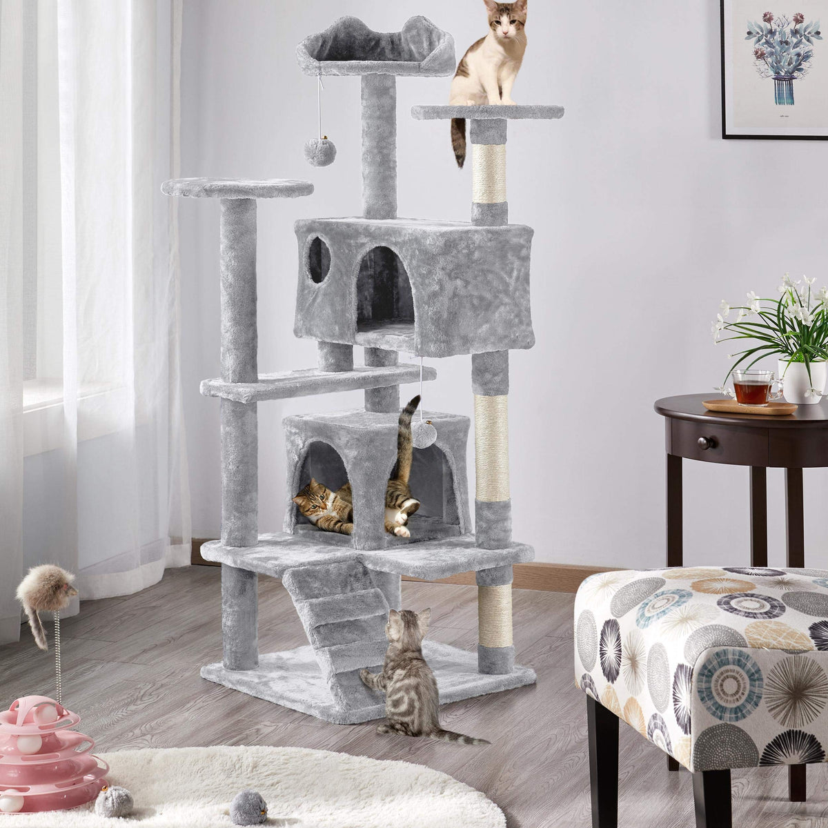 Topeakmart 54In Cat Tree, Cat Tower W/Large Cat Condo Scratching Posts And Perch, Cat Stand House Furniture, Light Gray