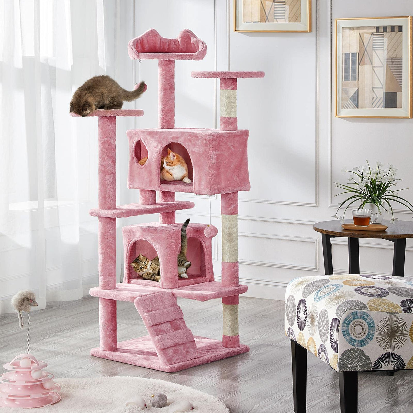 Topeakmart 54In Cat Tree, Cat Tower W/Large Cat Condo Scratching Posts And Perch, Cat Stand House Furniture, Pink