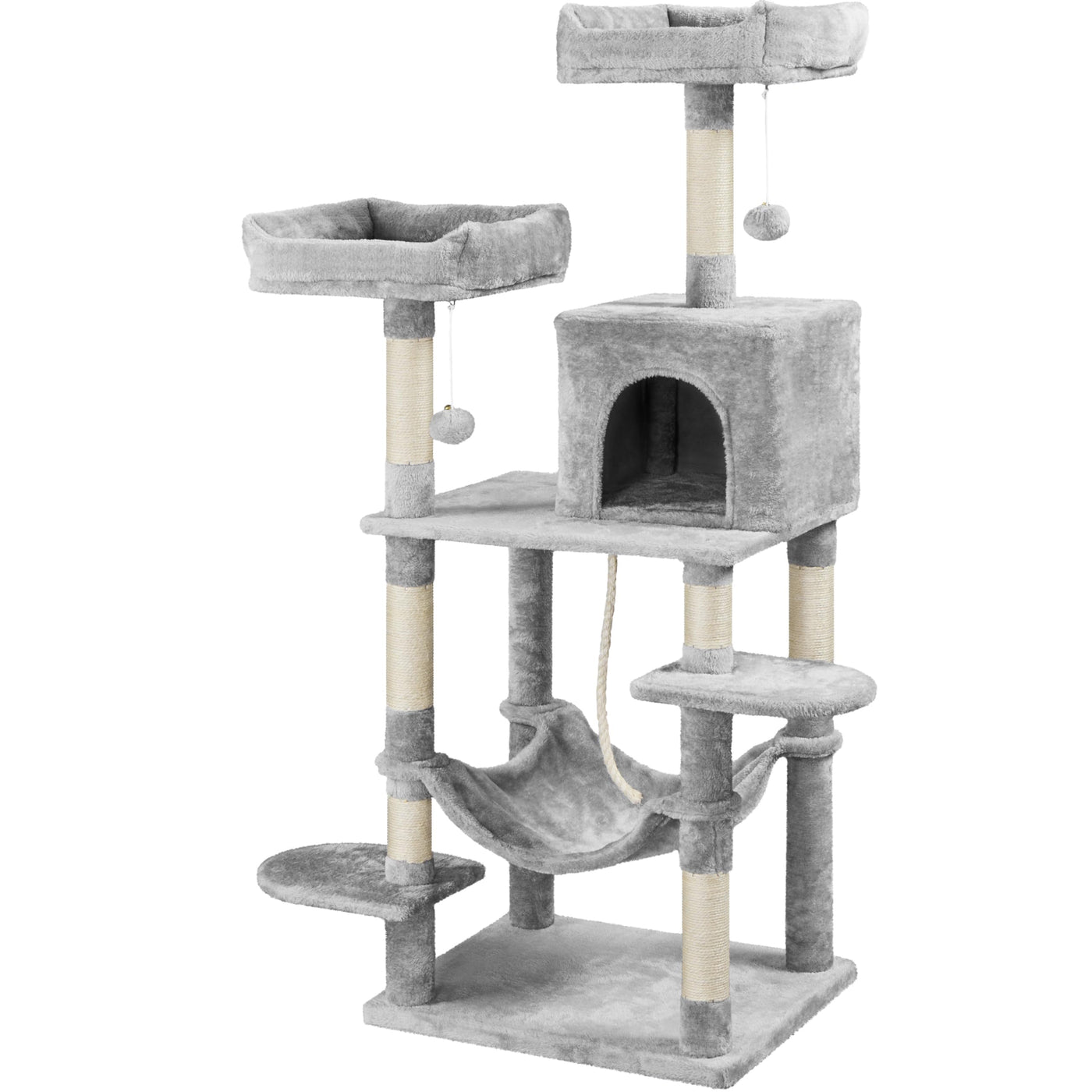 Multilevel Cat Tree Cat Tower Large Cat Condo With Condo & Plush Perch & Scratching Post & Hammock Cat Tree Condo For Medium/Large Catsquick Overview:Every Cat Deserves An Exclusive Activity Center To Play And Sleep. This Cat Tree Can Meet This Need And It Can Accommodate 2-3 Cats To Have Fun At A Time. The Cat Tree Condo Is Constructed Of Innocuous Particle Board, Natural Sisal, And Skin-Friendly Soft Plush Fabric, Offering Your Cats A Healthy And Comfy Touch In Their Tower. Jumping From Tier To Tier, Punching The Furballs And Sisal Twine, Scratching On The Post, Taking A Little Nap On The Perch Or In The Cubby/Hammockwith This Cat Tree, Your Little Fur Friends Will Be The Happiest Kittens In The World. Colors Are Selectable, So Do Not Wait And Take This Home Now!Specifications:Material: Particle Board, Plush, Sisal, Paper Tubes, Metal, And Plasticcolor: Light Grayoverall Size: 24 X 19 X 59Inch (L X W X H)Cubic Condo Size: 15.7 X 14 X 11.6Inch (L X W X H) Condo Entrance Size: 7.7 X 8Inch (W X H)Foam-Edged Perch Size: 15.7 X 15.7 X 4Inch (L X W X H)Max. Weight Capacity: 83.8Lbg.W.: 38.6Lb N.W.: 36Lbnote:1. Please Allow 0.5Inch Error Due To Manual Measurement.2. Keep The Cat Tree Dry And Away From Fire.3. Please Make Sure The Size Of The Product Fits Your Pet Before Purchasing. This Cat Tree Is Recommended For Families With 2-3 Medium/Large Cats.
