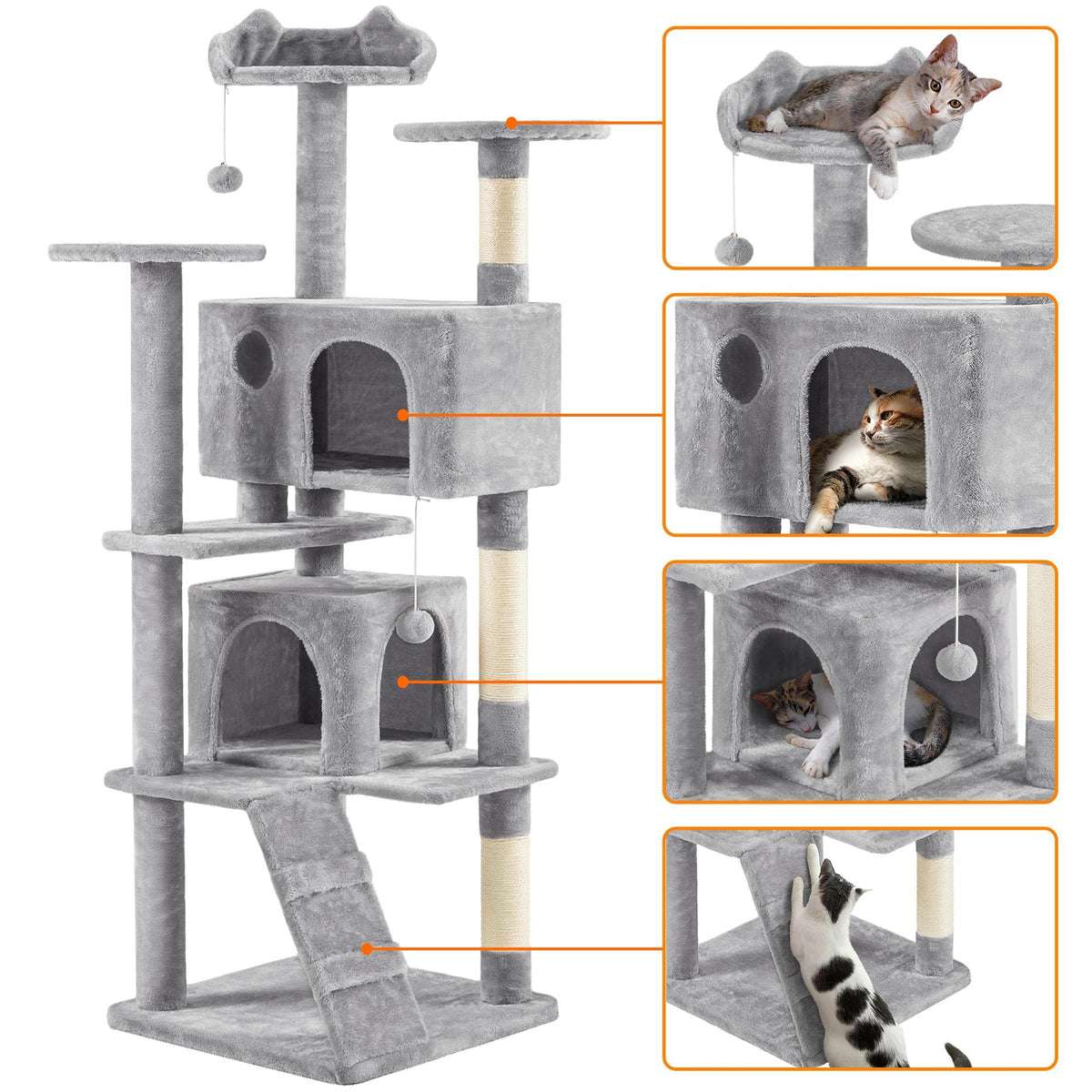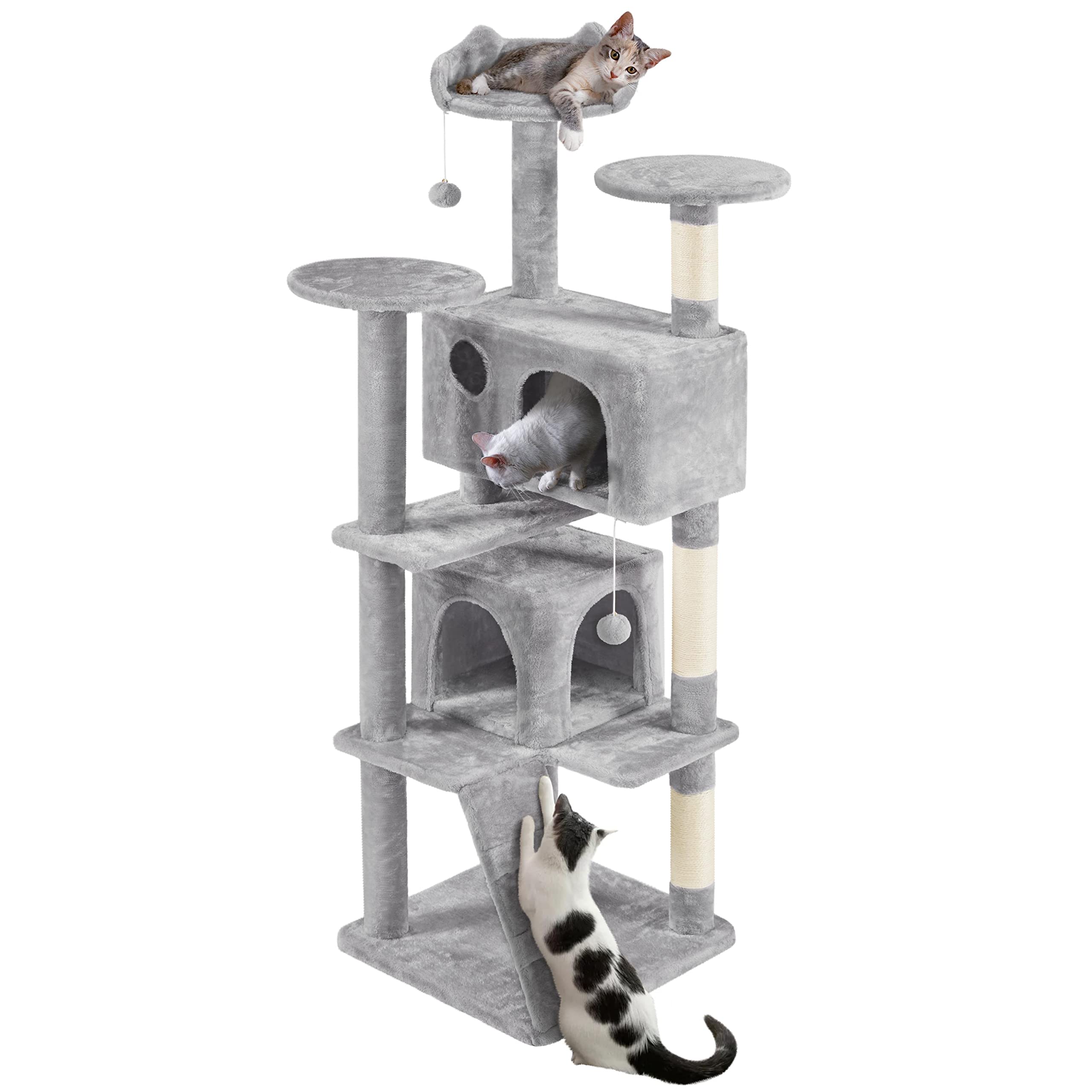 Cat Tree Kitten Tree Tower W/ 2 Condos &Amp; 2 Fur Balls &Amp; 3 Scratching Posts &Amp; 3 Platforms Multilevel Indoor Cat Tree Tower For Small Medium Catsquick Overview:Do You Know About Your Cat? What Is Your Cat'S Interest? Cats Are Active And Lively. They Need Suitable Places And Leisure Facilities To Have Fun. Our Multifunctional Cat Tree Will Meet Your Needs. This Multi-Level Cat Tower Is Loved For Its Spacious Cat Cave, Exciting Fur Balls, And Comfortable Top Perch And Condo For Relaxing After A Long Day Of Hide-And-Seek. The 3 Top Perches Bring Perfect Spots For Resting And Watching Outside, Two Condos For Hide-N-Seek, And Three Sisal Rope Scratching Posts For Developing Positive Scratching Behavior, And More Importantly, Freeing Your Furniture From Those Sharp Little Claws. Do Not Let Your Cat Wait Anymore!Specifications:Materials: Particleboard, Plush, Sisalcolor: Light Grayoverall Dimensions: 55 Cm L 55 Cm W 178Cm H / 22 L 22' W 70' Hsmall Condo: 35 Cm L 35 Cm W 30.5 Cm H / 14' L 14' W 12' Hbig Condo: 55 Cm L 30.5 Cm W 30.5 Cm H / 21.7' L 12' W 12' Hdoor: 20 Cm W 22 Cm H / 8' W 8.7' Hround Platform Diameter: 34 Cm / 13.4'Maximum Weight Capacity: 25 Kg / 55 Lbgross Weight (Product In The Box):19.4 Kg / 42.8 Lbnet Weight (Assembled Product Weight): 18.2 Kg / 40.2 Lbnote:1. Please Allow A 1.5 Cm / 0.6' Measurement Tolerance.2. Keep The Cat Tree Dry And Away From Fire.Package Included:1 X Cat Tree1 X Assembly Instructions1 X Accessory Kit'