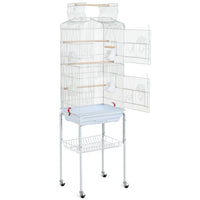Specifications:Color: whiteMaterial: painted iron, plasticOverall dimension (with top opened): 18 x 14 x 64 (LxWxH)Overall dimension (with top closed): 18 x 14 x 59.5 (LxWxH)Cage size (with top closed): 18 x 14 x36.5 (LxWxH)Bar spacing: 0.4Door size: 11.8 x 11.5; 4 x 4.5 (WxH)G.W.: 17.3lb