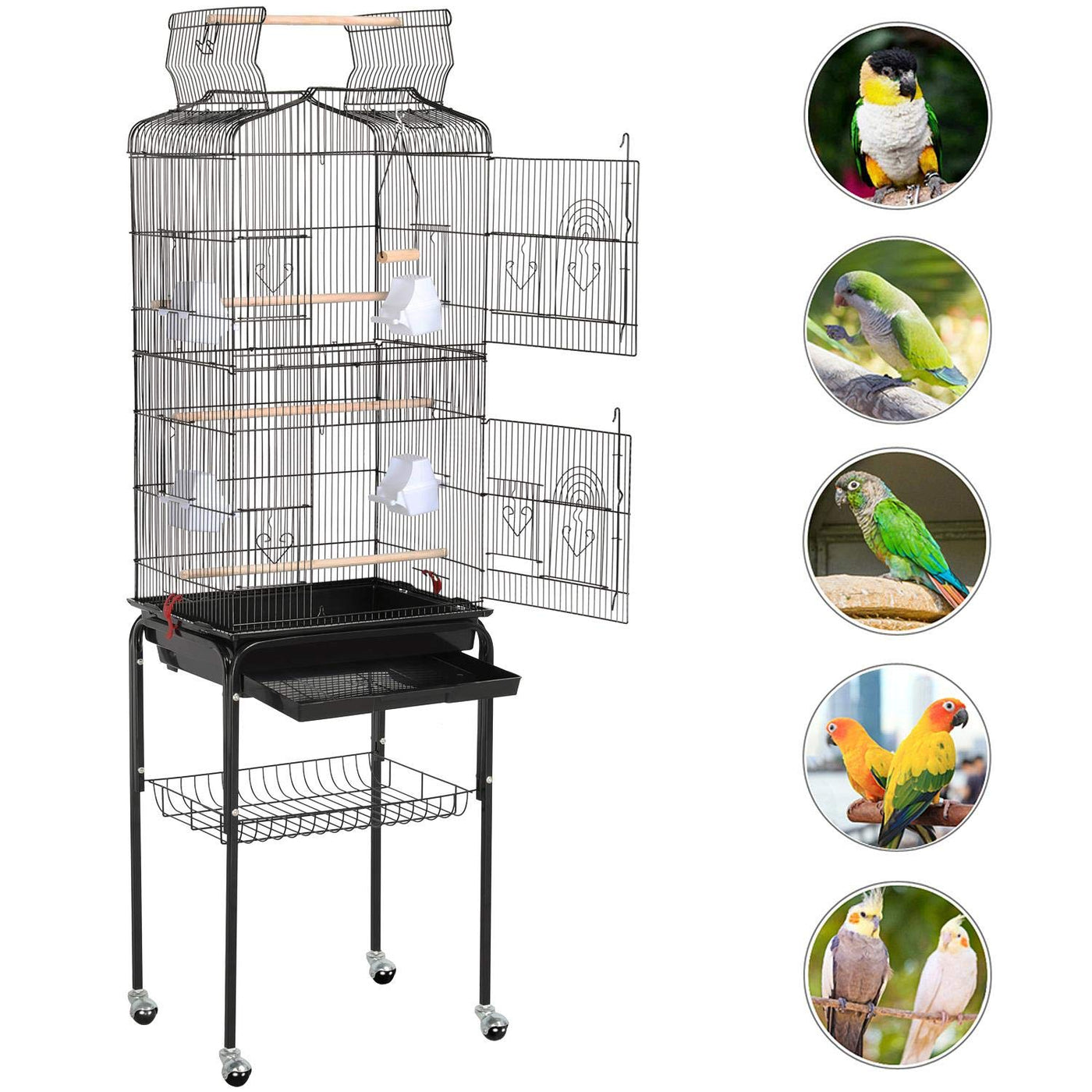 Topeakmart Open Play Top Large Parakeet Small Parrot Bird Cage with Stand for Budgies Finches Canaries Lovebirds