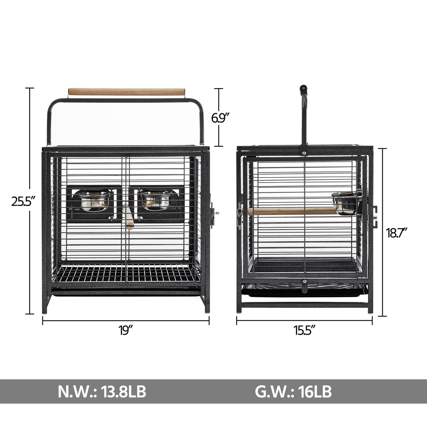 Specifications:Color: Hammered Blackmaterial: Iron, Stainless Steel, Plastic, Woodbar Spacing: 0.6 Overall Dimensions(With Handle): 19 X 15.5 X 26 (Lxwxh)Cage Dimensions(Without Handle): 19 X 15.5 X 18.7 (Lxwxh)Dowel Perch Length: 14 , 15.2 N.W.: 13.8Lbg.W.: 16Lbnote:1. Please Allow 0.5 Errors Due To The Manual Measurement.2. This Travel Bird Cage Is Designed For Small To Medium-Sized Birds. Please Make Sure This Cage Can Fit Your Birds Properly Before Ordering.