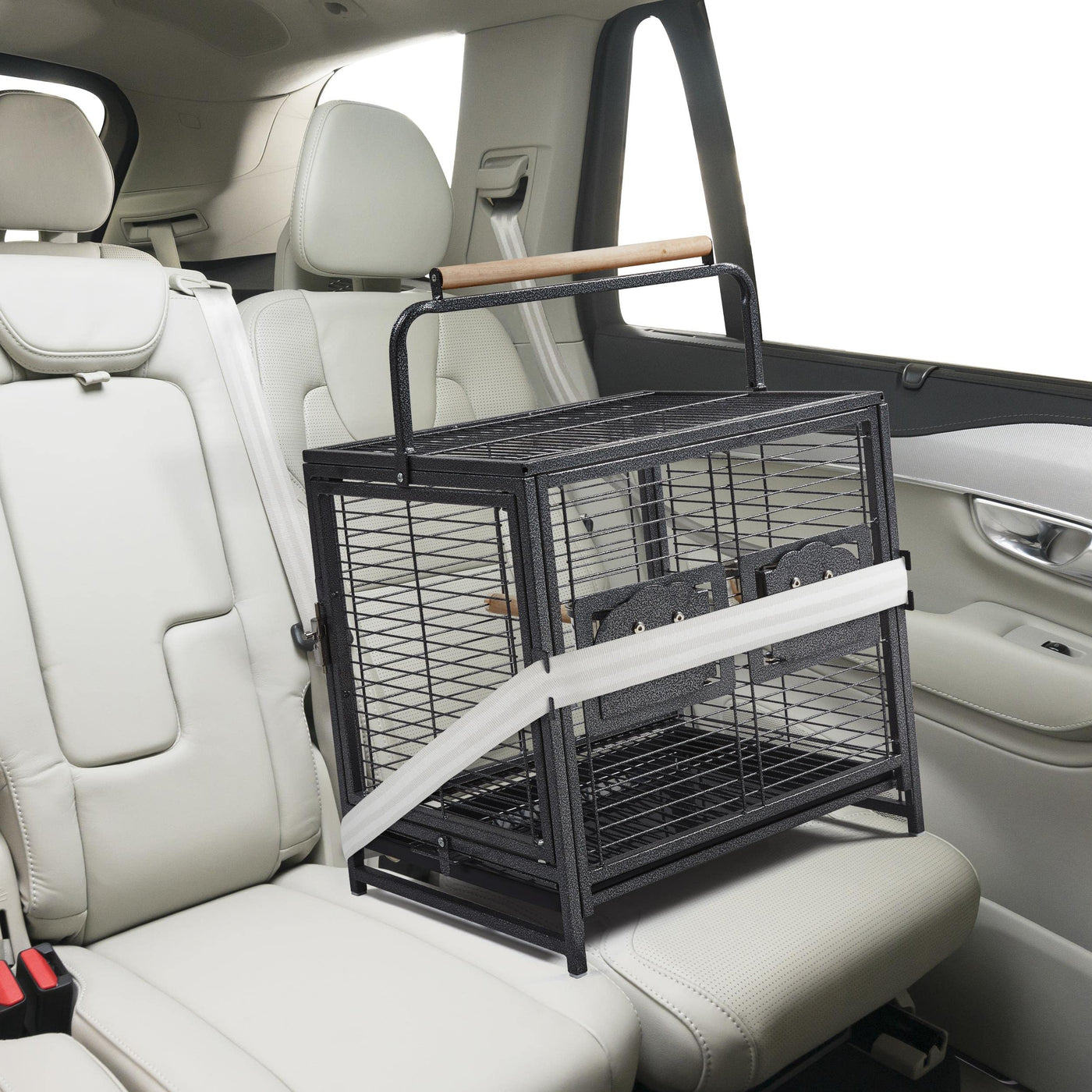 Q: Does the bird cage have safety features to prevent escapes?A: Yes, the bird cage includes a front door and two feeder doors that are secured with locks, preventing your birds from escaping. Additionally, side hooks are provided to secure the cage with a seatbelt for added safety during transport.
