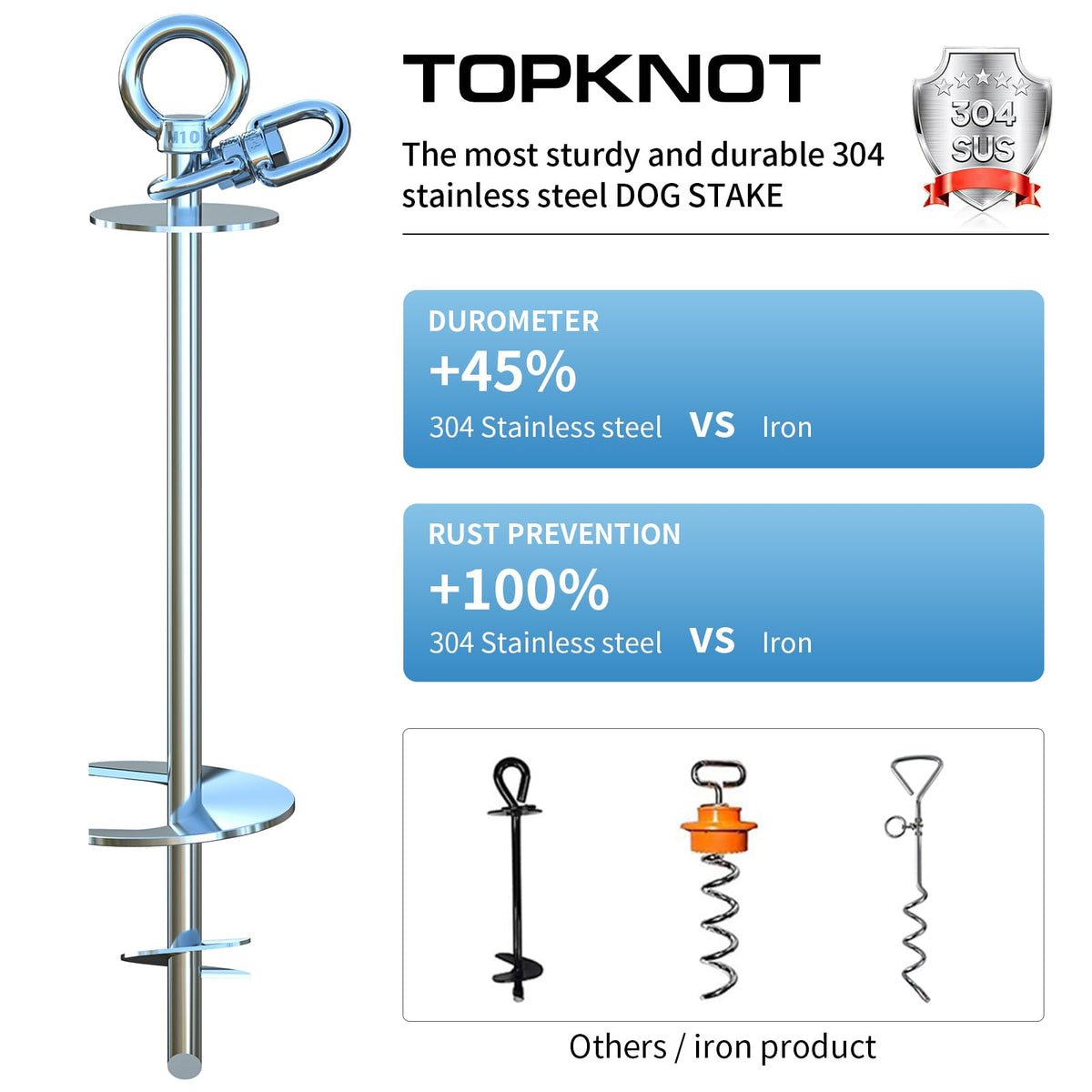Topknot Dog Tie Out Stake,Heavy Duty Dog Run-304 Stainless Steel Stake,360 Swivel Dog Runner For Yard,Use Any Tie Out Cable Or Y