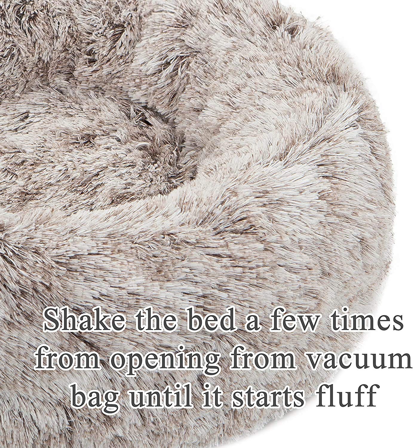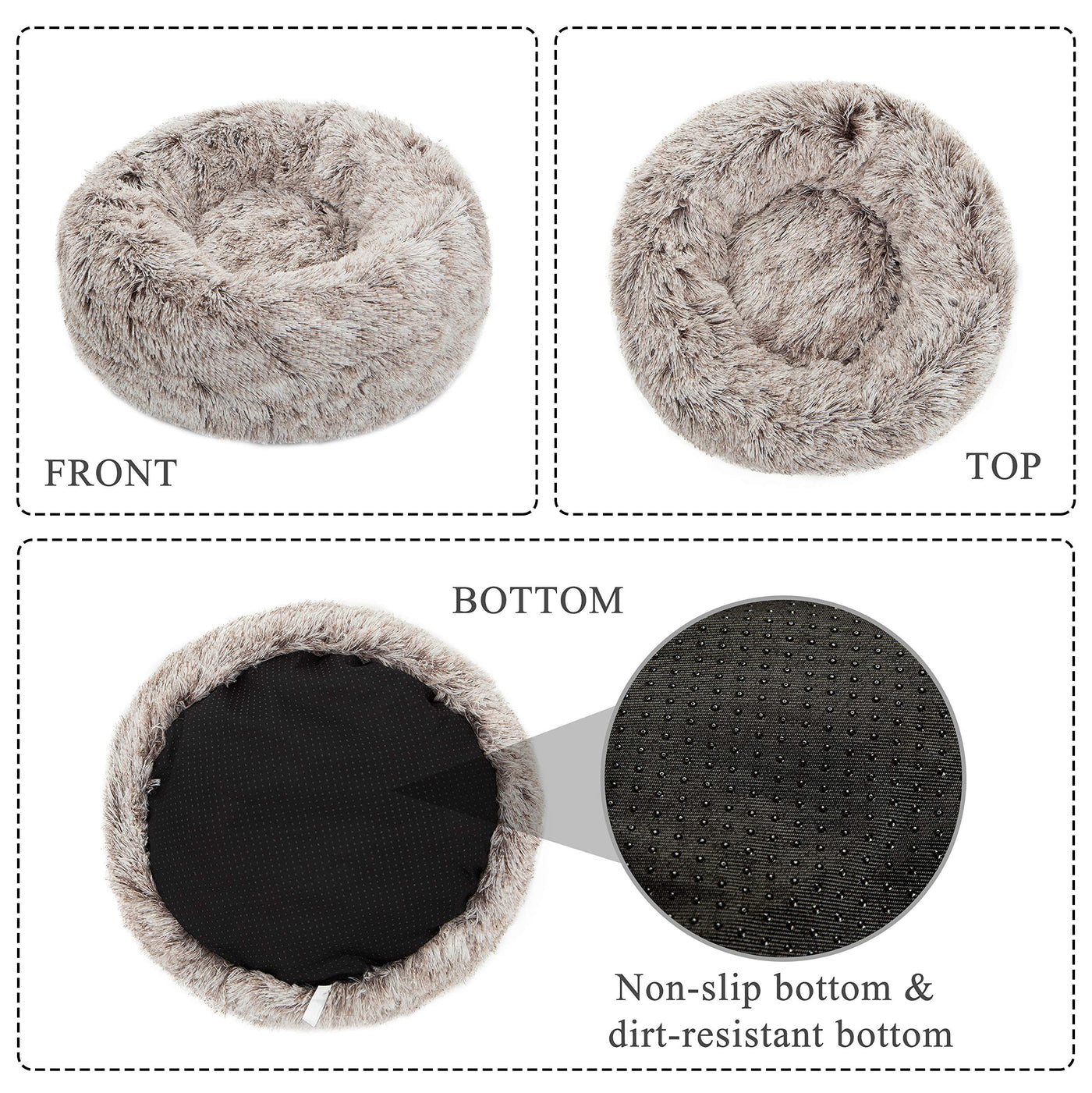 Tormays Calming Dog Cat Bed For Small, Plush Round Cuddler Pet Bolster Faux Fur Fluffy Cushion Bed, Anit-Anxiety Self-Warming Co