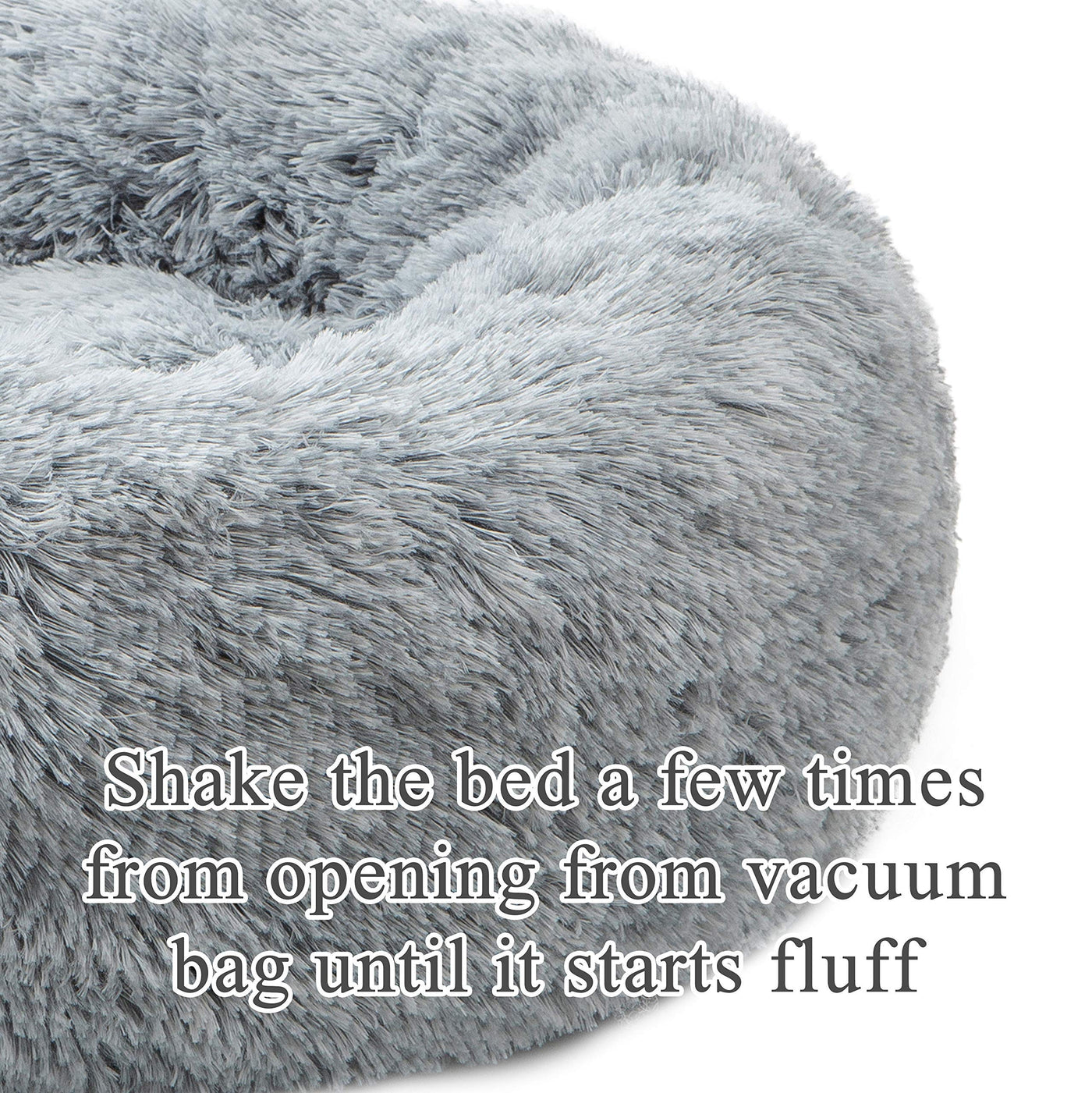 Tormays Calming Donut Dog Bed Large, Plush Round Cuddler Dog & Cat Bed, Anit-Anxiety Marshmellow Fluffy Faux Fur Cushion (28'',
