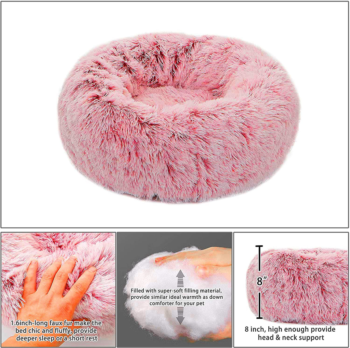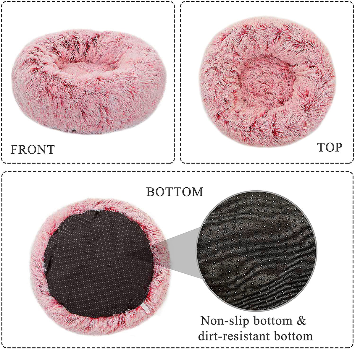 Tormays Calming Donut Dog Bed Xl, Plush Round Cuddler Dog & Cat Bed, Anit-Anxiety Marshmellow Fluffy Faux Fur Cushion (32'', Pin