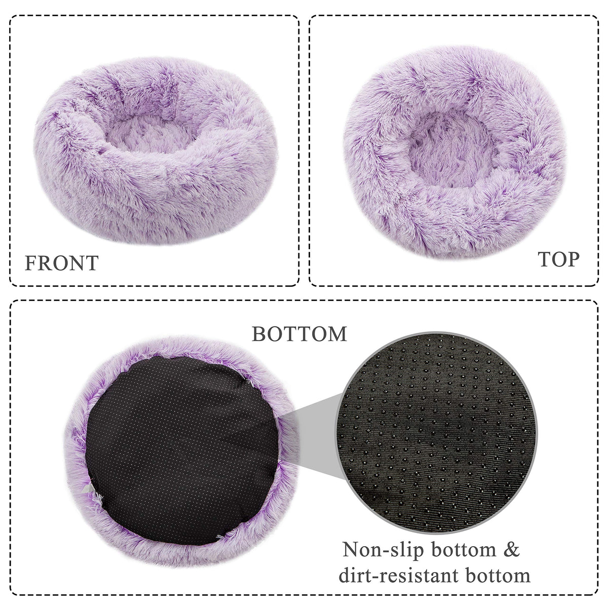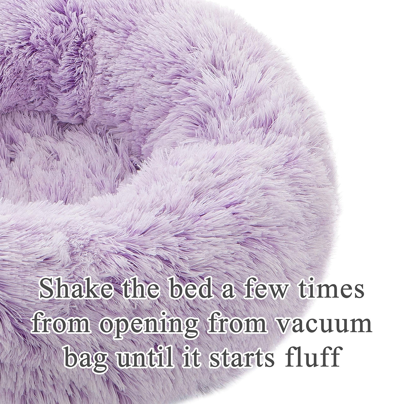 Tormays Calming Donut Dog Bed Xl, Plush Round Cuddler Dog & Cat Bed, Anit-Anxiety Marshmellow Fluffy Faux Fur Cushion (32, Pur