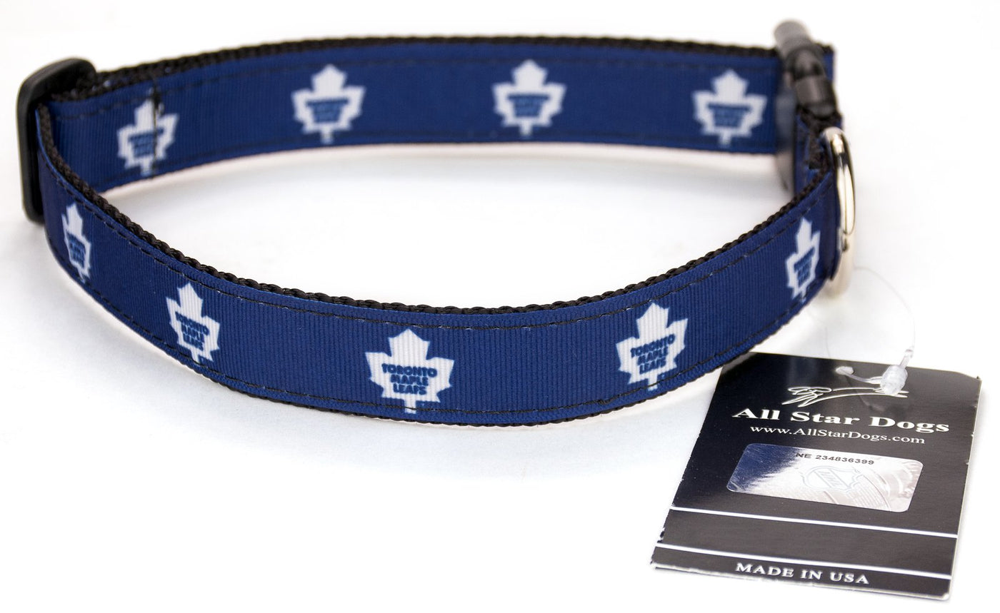 Q: Is the Toronto Maple Leafs Ribbon Dog Collar an officially licensed product?A: Yes, this collar is an officially licensed product, ensuring that it meets quality standards and features authentic team logos and colors.