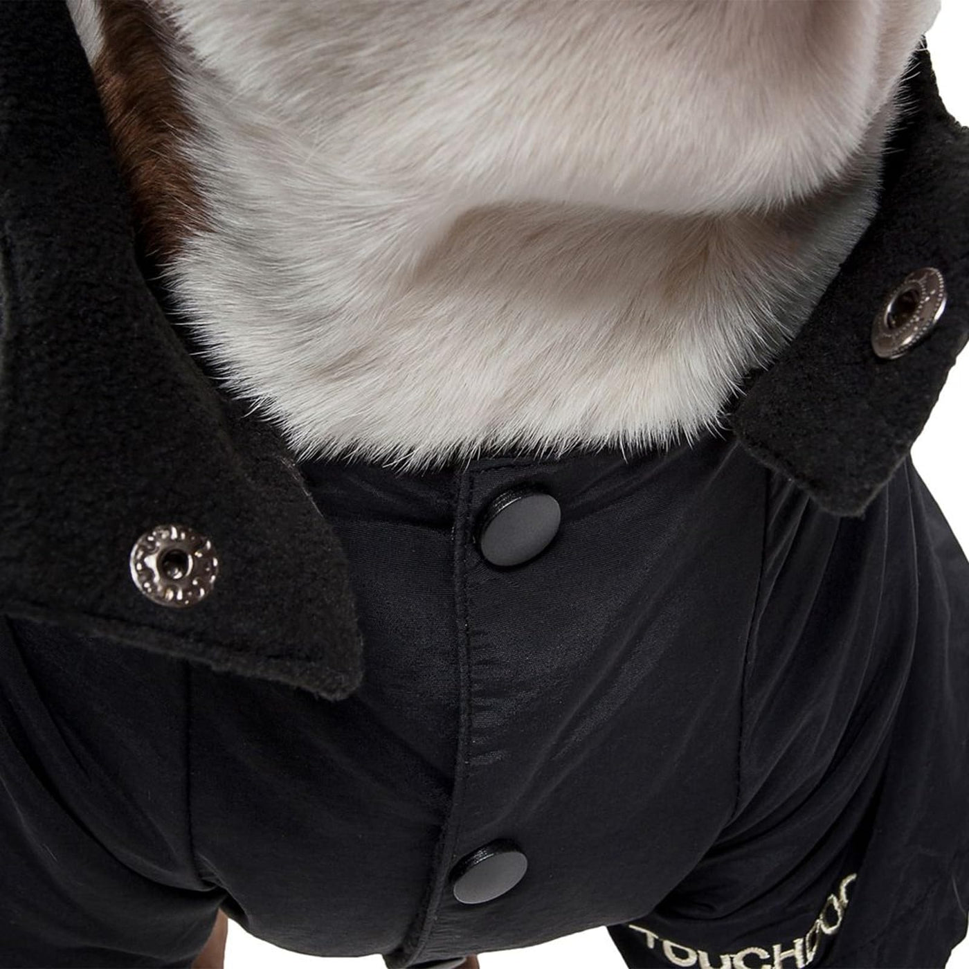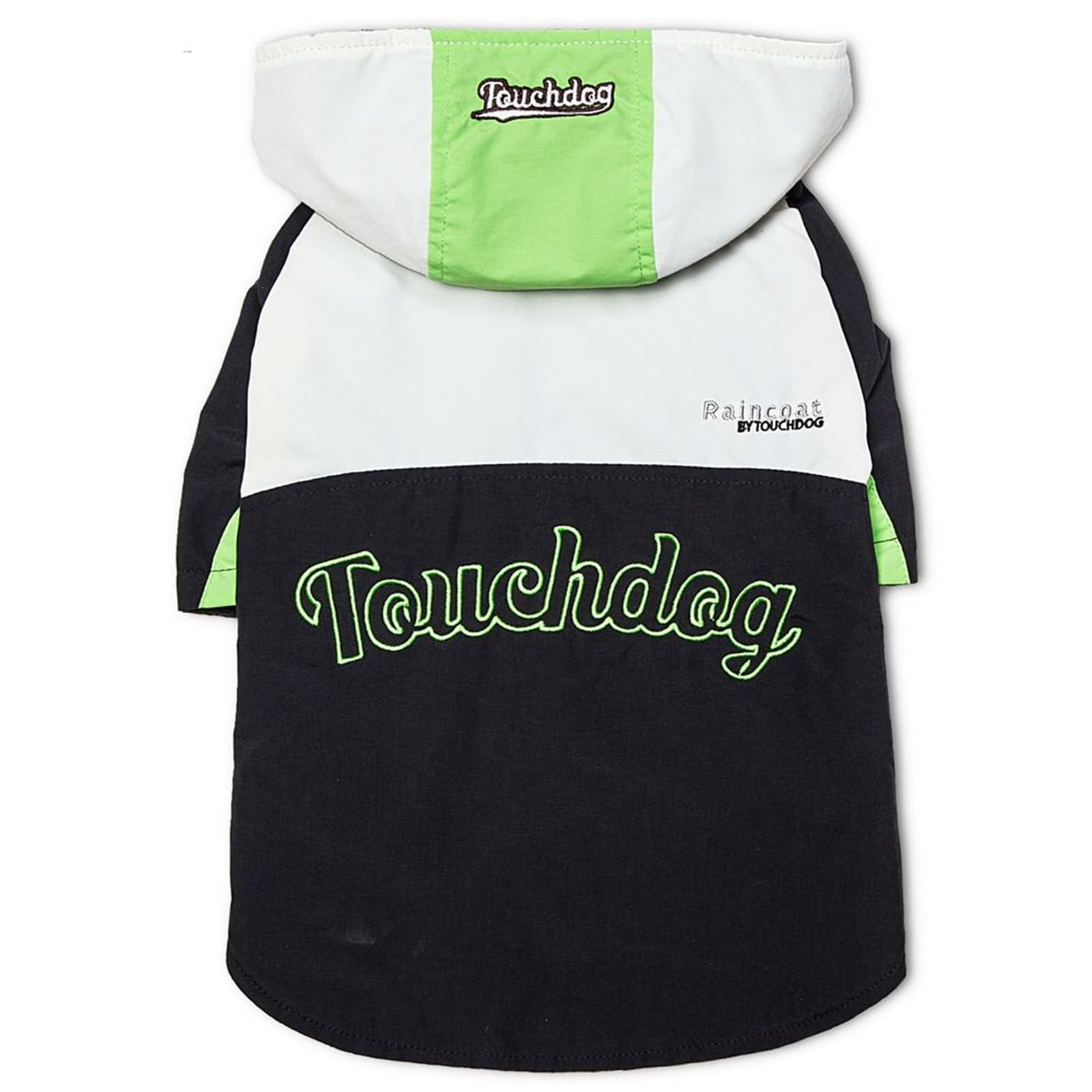 Q: Does the TOUCHDOG coat have any special design features?A: Yes, the TOUCHDOG coat features triple accented coloring, customized heavy-stitched embroidery on the hood and backside, and belly Velcro closures for easy on and off access, combining style and functionality for your pet.