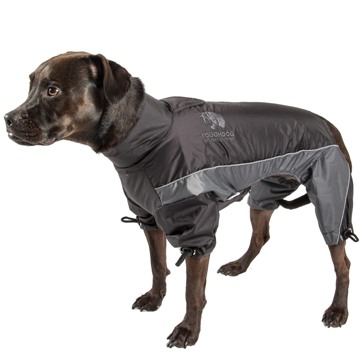 The Touch dog quantum-ice full-bodied adjustable and 3m reflective dog jacket is inner-lined with exclusively developed Black shark technology, this innovative fabric is lightweight, waterproof, windproof, snow proof, breathable, cold-repellent, impermeable and tear resistant and engineered and tested to withstand the harshest weather conditions possible, whether youre caught in a blizzard, typhoon, hurricane or rainstorm this is the premiere premium protective dog jacket of its kind. This Outer shell is double-waterproofed, windproof, breathable, tear proof and in addition features surrounded 3m reflective lining for emergency visibility. The interior features a thick layer of thick protective anti-static polar fleece which is extremely breathable and offers a fantastic ventilation, warmth and comfort ability. Perfect for the outdoor dog. Features adjustable straps by every leg and features auto-adjustable built-in inner tubed lining for an out-growing fit. Additionally, this dog coat features above-top zippers for dog placement and Velcro enclosures that completely prevents any wind from entering while preventing any pulling of the dogs hair. Features a leash slit above the neck area. This dog coat features accented embroidery and a print on the Outer shell. Touch dog, the leading premium pet brand of tomorrow. Available in multiple colors and sizes. Sizing guide: from back of neck to tail area (in inches) 8 : extra small 10-12: small 14-16: medium 18-20: large 22-24: extra large.