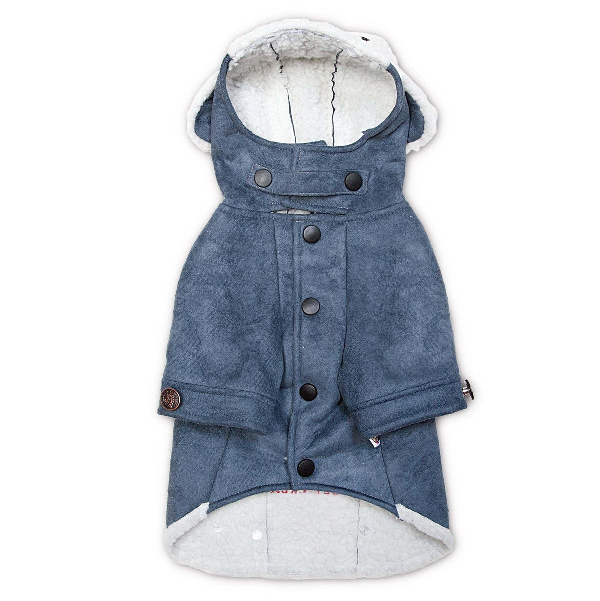 The Touchdog 'Tuskegee' Aero-Vintage Designer Dog Coat is inspired by the official World War II aviation uniforms worn during U.S. combat. This Dog Jacket features a soft suede-like Exterior Shell with Sherpa Inner-lining that is reversed onto the back stitching. Detailed with a designer hood with etch-embroidered vintage aviation glasses and earmuffs, and engraved buttoned trims with a cross-jaw strap for added warmth. Available in Multiple Sizes and Colors. General Sizing Guide: From Back of Neck to Tail area ('In' Inches) 8' : EXTRA SMALL 10-12': SMALL 14-16': MEDIUM 18-20': LARGE 22-24': EXTRA LARGE. Sizing Specifications: (In Inches). XS: 8.3' Length, 17.7' Chest Girth, 12.2' Neck Girth SM: 11.8' Length, 21.7' Chest Girth, 13.7' Neck Girth MD: 15' Length, 24.4' Chest Girth, 15.8' Neck Girth LG: 18.9' Length, 29.9' Chest Girth, 16.9' Neck Girth XL: 22.8' Length, 34.7' Chest Girth, 18.9' Neck Girth