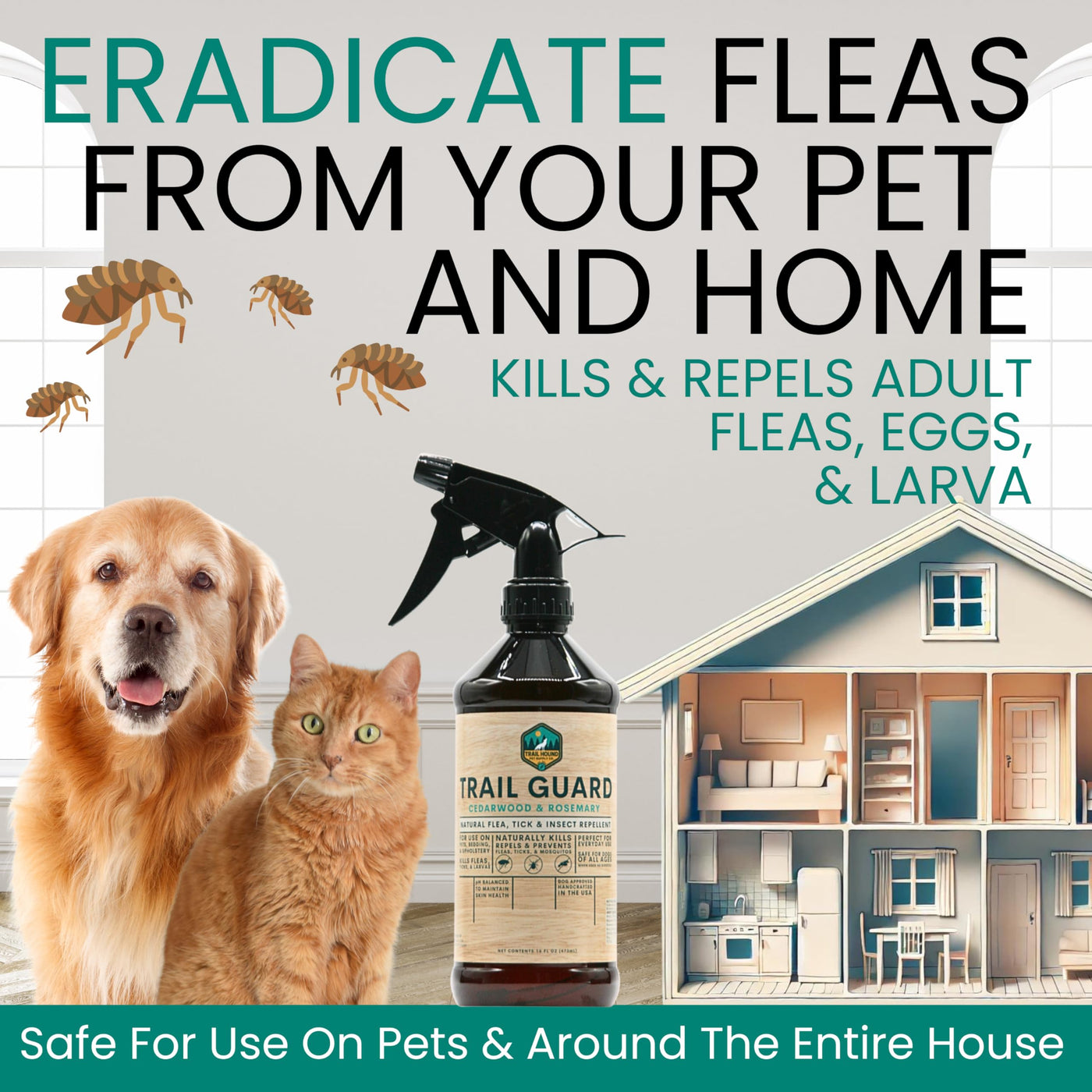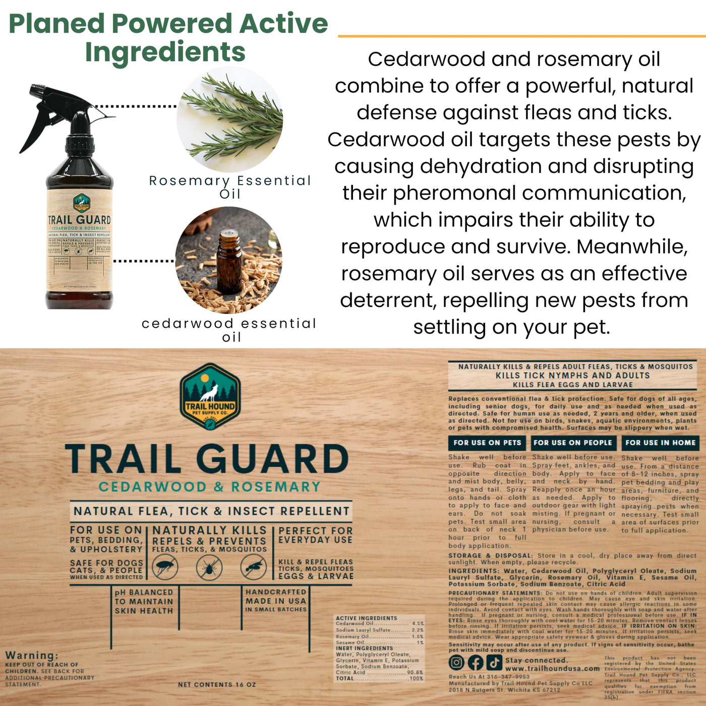 Trail Guard Natural Extra Strength Insect, Flea and Tick Spray for Dogs, Cats, People & Home - 16oz Plant-Based Insect & Tick Re