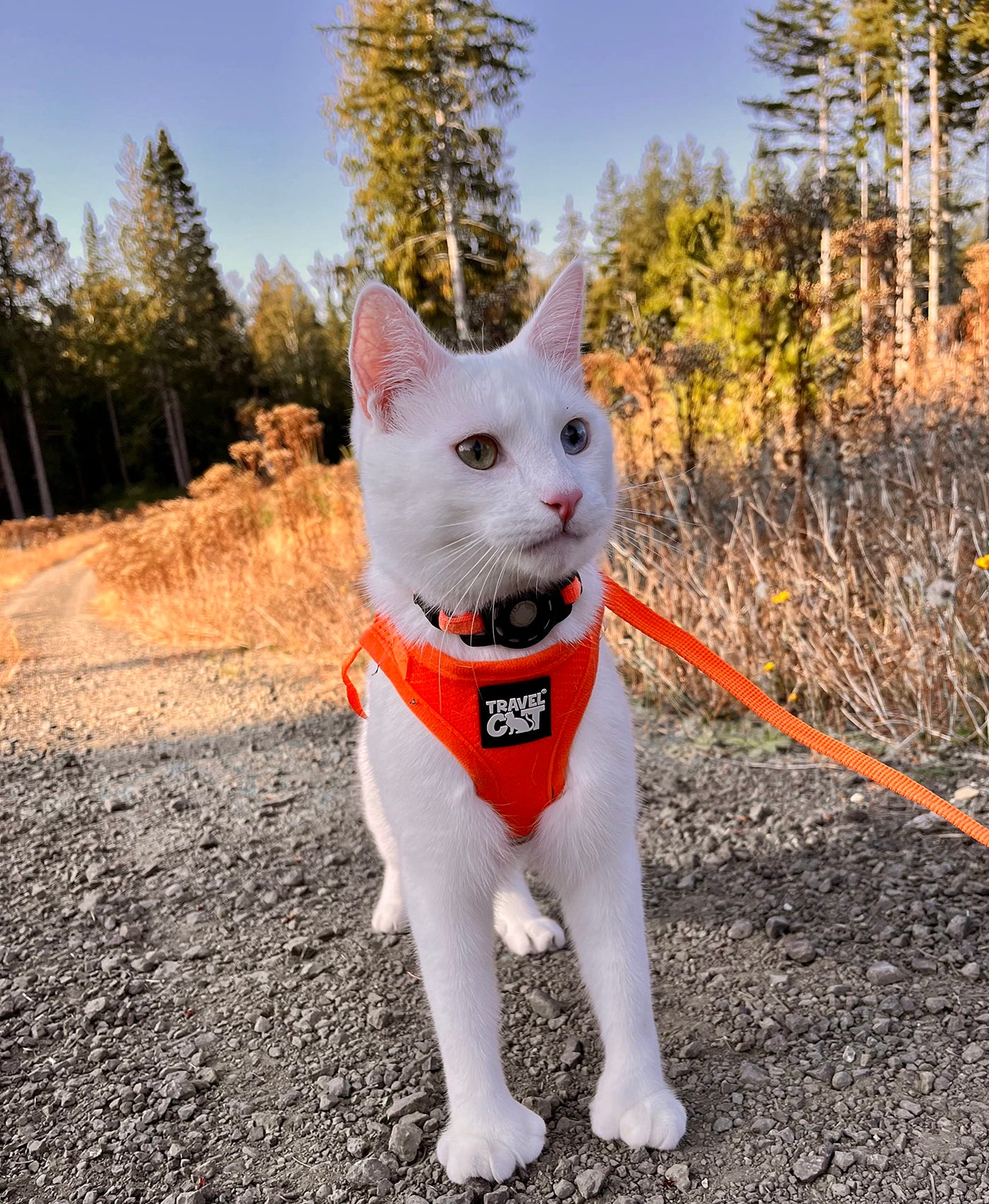 Cat Lovers Unite! Like many of you, we are inspired by our cats. After rescuing our first cat Andie from an abandoned backyard, we became “cat people” pretty much overnight. We wanted to take him with us during our travels so we launched this company in New York City shortly after. “The True Adventurer” Reflective Cat Harness and Leash Set for Adventure Cats Adventure cats & kitties need a safe and secure harness for all their travels. Specially designed for cats! That’s why we designed this premium cat harness and leash set with all the best features, so you and your pet can confidently step outside and enjoy the great outdoors together. Breathable, Secure and Snug Fit Our adjustable harness is made with strong, breathable mesh fabric so your cat stays comfortably secure in it. You’ll have no worries about their escaping because the buckles are built to stay put! Premium Safety Features Each harness has a reflective strip across the body so your cat can be seen from afar, even when it starts to get dark. The leash is made of extremely durable nylon to prevent escape, and it comes with a 360-degree rotating snap clip so it can adjust to your cat’s movements. Delightful Colors and Perfect Sizes Our harnesses come in four colors to suit your cat’s paw-sonality: Black, Grey, Orange and Red. To choose the best size, measure around their chest snugly, down past all the fur to ensure a secure fit. The straps are still adjustable, so it’s okay to pick one size bigger if your kitty is still growing! (Please Note: The X-SMALL size is for very young kittens only.)