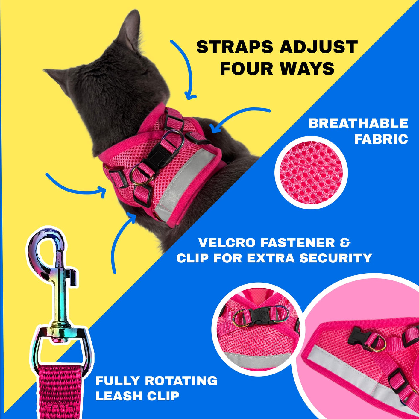 Cat Lovers Unite! Like Many Of You, We Are Inspired By Our Cats. After Rescuing Our First Cat Andie From An Abandoned Backyard, We Became Cat People Pretty Much Overnight. We Wanted To Take Him With Us During Our Travels So We Launched This Company In New York City Shortly After. The True Adventurer Reflective Cat Harness And Leash Set For Adventure Cats Adventure Cats & Kitties Need A Safe And Secure Harness For All Their Travels. Specially Designed For Cats! Thats Why We Designed This Premium Cat Harness And Leash Set With All The Best Features, So You And Your Pet Can Confidently Step Outside And Enjoy The Great Outdoors Together. Breathable, Secure And Snug Fit Our Adjustable Harness Is Made With Strong, Breathable Mesh Fabric So Your Cat Stays Comfortably Secure In It. Youll Have No Worries About Their Escaping Because The Buckles Are Built To Stay Put! Premium Safety Features Each Harness Has A Reflective Strip Across The Body So Your Cat Can Be Seen From Afar, Even When It Starts To Get Dark. The Leash Is Made Of Extremely Durable Nylon To Prevent Escape, And It Comes With A 360-Degree Rotating Snap Clip So It Can Adjust To Your Cats Movements. Delightful Colors And Perfect Sizes Our Harnesses Come In Four Colors To Suit Your Cats Paw-Sonality: Black, Grey, Orange And Red. To Choose The Best Size, Measure Around Their Chest Snugly, Down Past All The Fur To Ensure A Secure Fit. The Straps Are Still Adjustable, So Its Okay To Pick One Size Bigger If Your Kitty Is Still Growing! (Please Note: The X-Small Size Is For Very Young Kittens Only.)