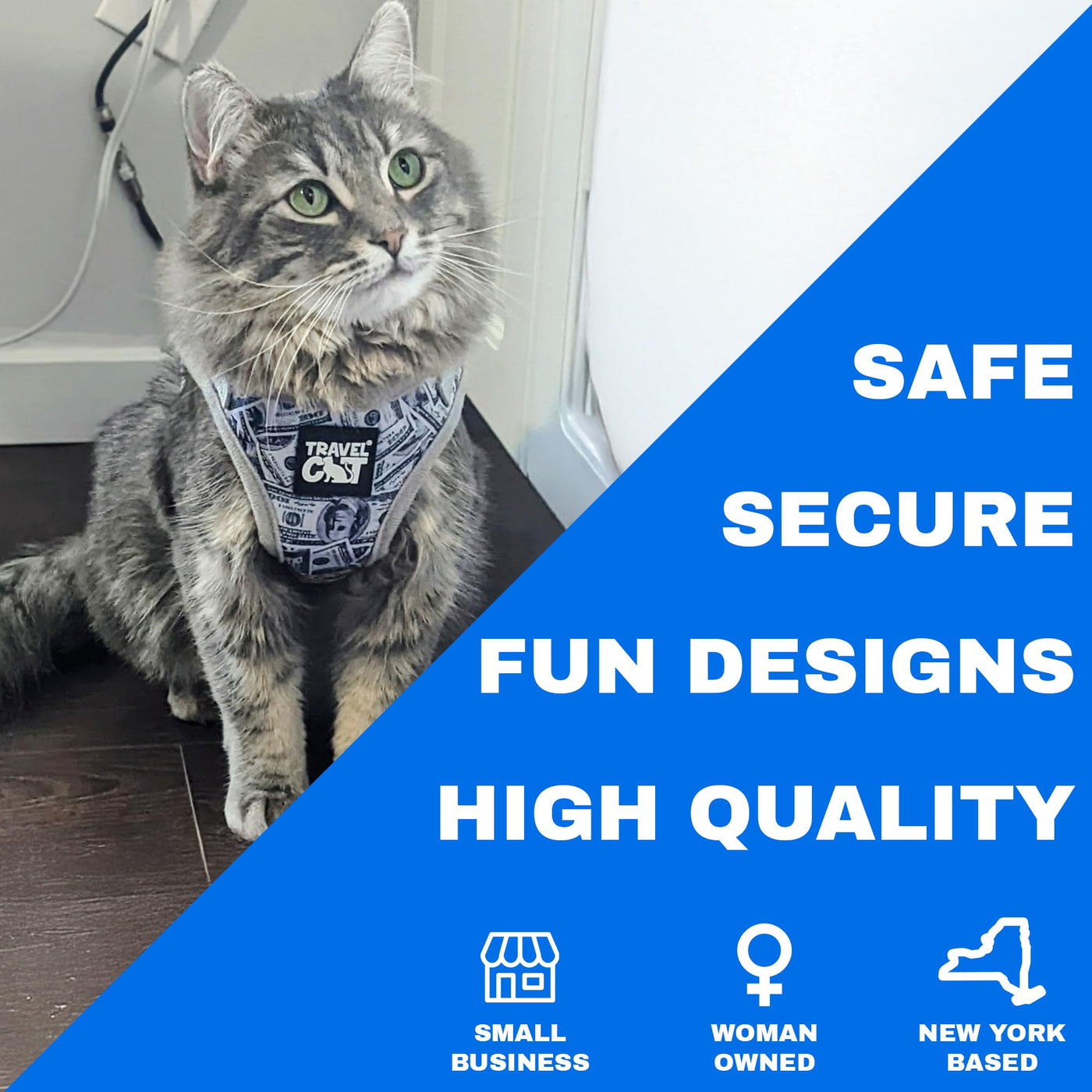Cat Lovers Unite! Like Many Of You, We Are Inspired By Our Cats. After Rescuing Our First Cat Andie From An Abandoned Backyard, We Became Cat People Pretty Much Overnight. We Wanted To Take Him With Us During Our Travels So We Launched This Company In New York City Shortly After. The True Adventurer Reflective Cat Harness And Leash Set For Adventure Cats Adventure Cats & Kitties Need A Safe And Secure Harness For All Their Travels. Specially Designed For Cats! Thats Why We Designed This Premium Cat Harness And Leash Set With All The Best Features, So You And Your Pet Can Confidently Step Outside And Enjoy The Great Outdoors Together. Breathable, Secure And Snug Fit Our Adjustable Harness Is Made With Strong, Breathable Mesh Fabric So Your Cat Stays Comfortably Secure In It. Youll Have No Worries About Their Escaping Because The Buckles Are Built To Stay Put! Premium Safety Features Each Harness Has A Reflective Strip Across The Body So Your Cat Can Be Seen From Afar, Even When It Starts To Get Dark. The Leash Is Made Of Extremely Durable Nylon To Prevent Escape, And It Comes With A 360-Degree Rotating Snap Clip So It Can Adjust To Your Cats Movements. Delightful Colors And Perfect Sizes Our Harnesses Come In Four Colors To Suit Your Cats Paw-Sonality: Black, Grey, Orange And Red. To Choose The Best Size, Measure Around Their Chest Snugly, Down Past All The Fur To Ensure A Secure Fit. The Straps Are Still Adjustable, So Its Okay To Pick One Size Bigger If Your Kitty Is Still Growing! (Please Note: The X-Small Size Is For Very Young Kittens Only.)