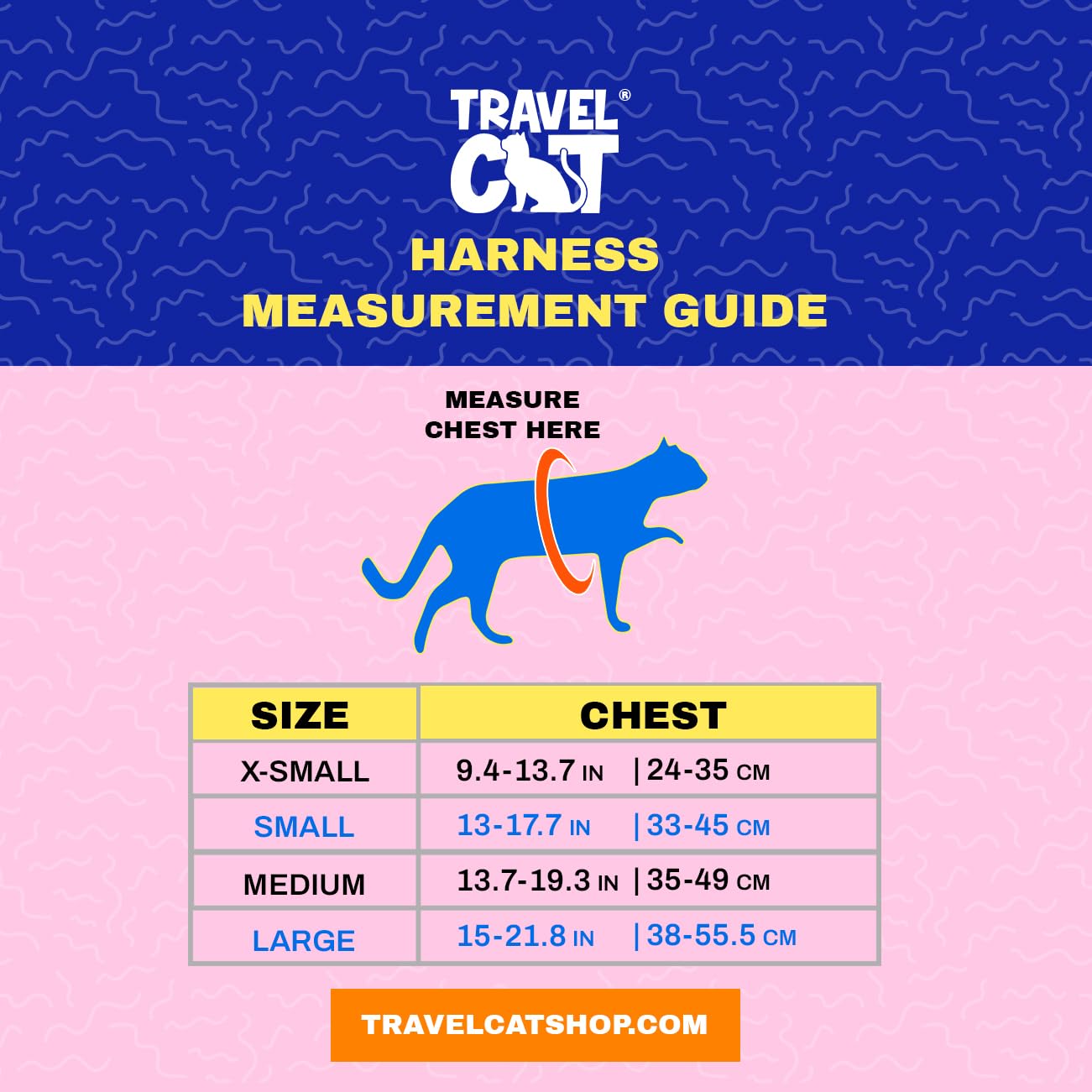 Q: What sizes are available for the Travel Cat & Stray Cat Harness and Leash Set?A: The Travel Cat & Stray Cat Harness and Leash Set comes in four sizes: Extra Small, Small, Medium, and Large. The Extra Small size is specifically designed for very young kittens. Please refer to our size chart and measure your cat's chest snugly to ensure the perfect fit.