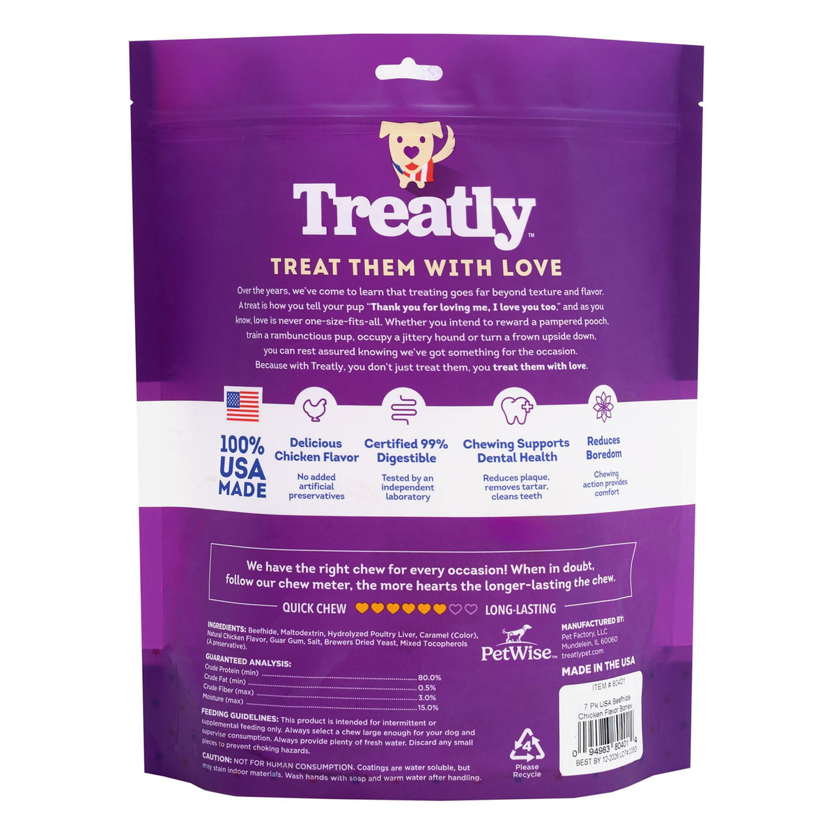 Treatly USA Beefhide Bones 5-6 Dog Chew Treats - Chicken Flavor, 7 Count/1 Pack