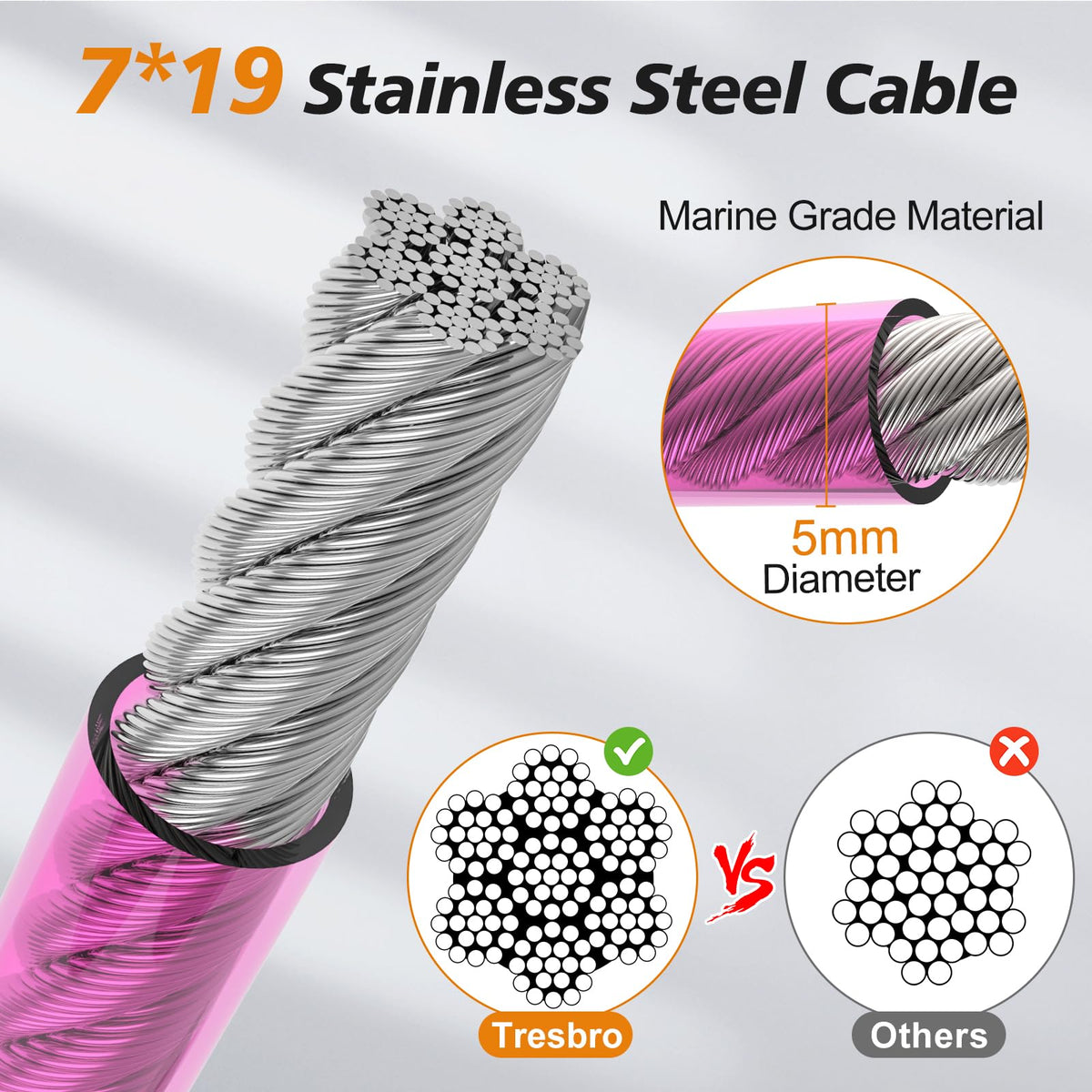 Ultra Strong Dog Tie Out - The inner core of our dog wire leash is consits 7*19 stainless steel wire which is the most tightly twisted and most sturdy structure of dog cable. The outer skin is chew proof vinyl coating and the crimps of the two end has been double hardened. Our dog tie out cable have been rigorously tested it 's perfect for dogs up to 500LBS.