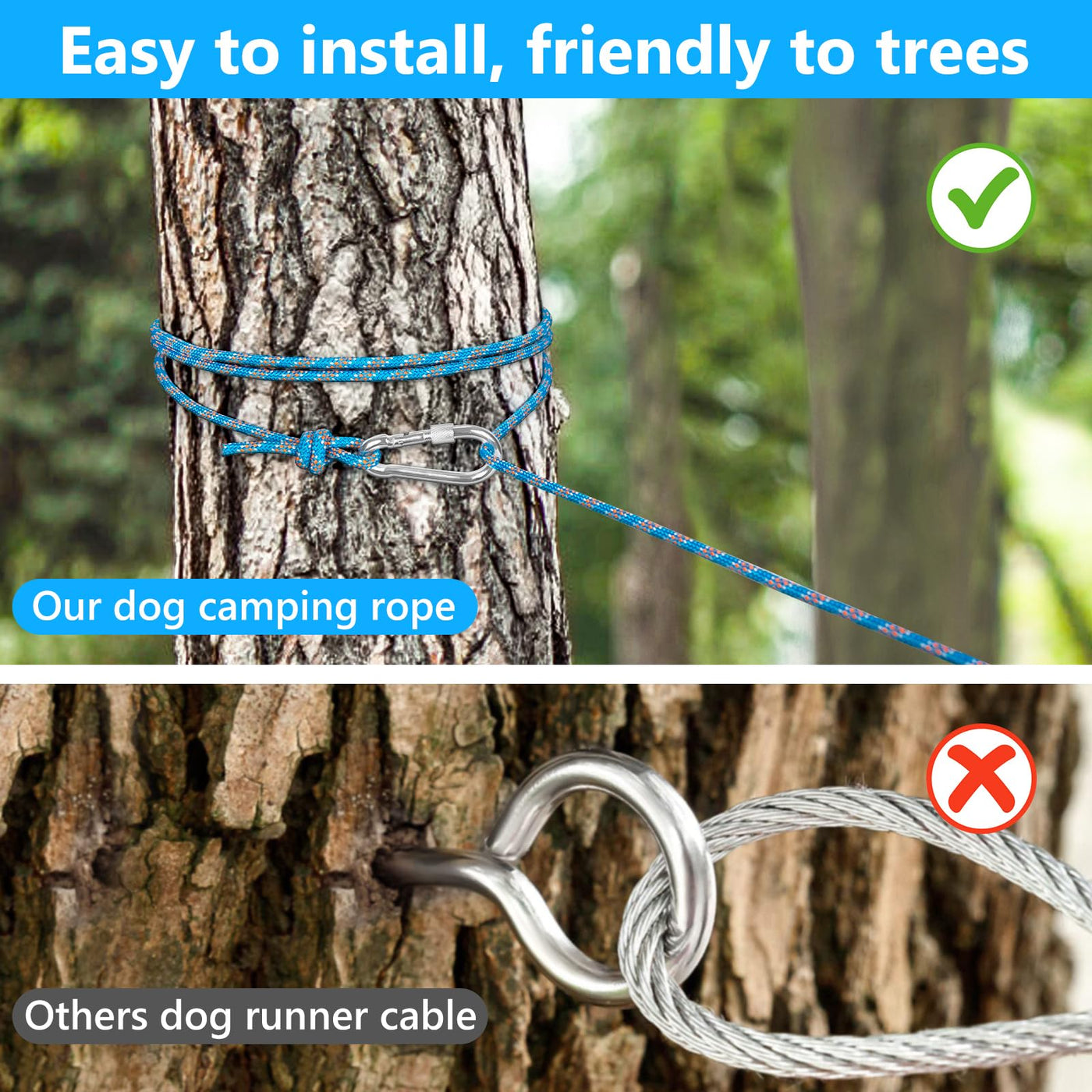 Tresbro Dog Tie Out Cable For Camping, 50Ft/75Ft/100Ft Trolley System For Dogs Up To 300Lbs, Portable Lightweight Dog Runner Lea