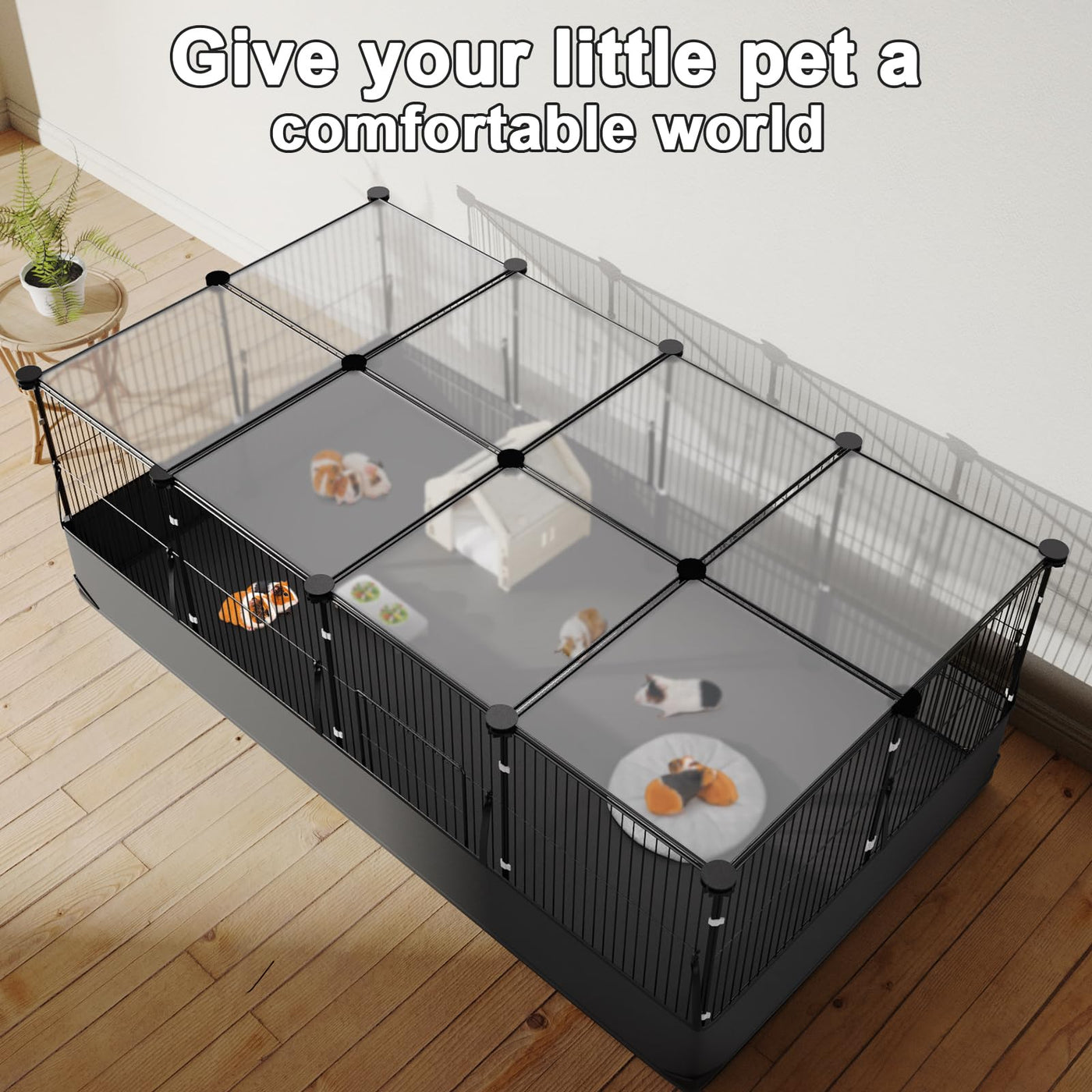 Tresbro Guinea Pig Cage with Top Cover & 12 Panels, Triple Fixing Measures Small Animal Playpen with Waterproof PVC Liner & One-