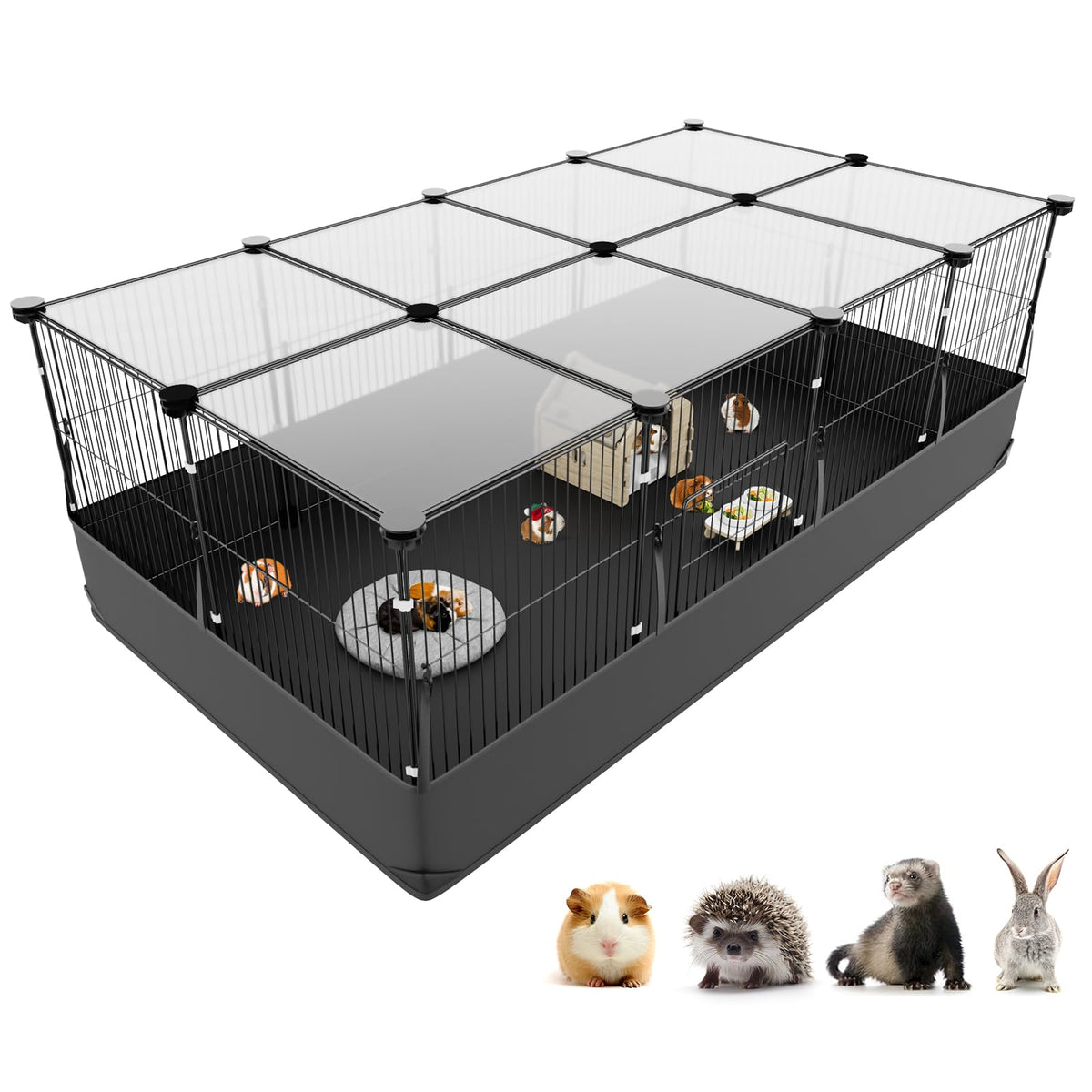 Tresbro Guinea Pig Cage with Top Cover & 12 Panels, Triple Fixing Measures Small Animal Playpen with Waterproof PVC Liner & One-Motion Hooks, 48 x 24 x 16 C&C Grids Cage for Bunny, Hedgehog, Hamster