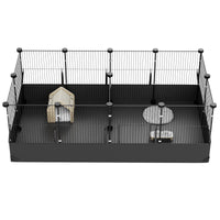 Tresbro Guinea Pig Playpen with 14 Panels & Divided Room, Triple Fixing Measures Small Animal Cage with Waterproof PVC Liner & O