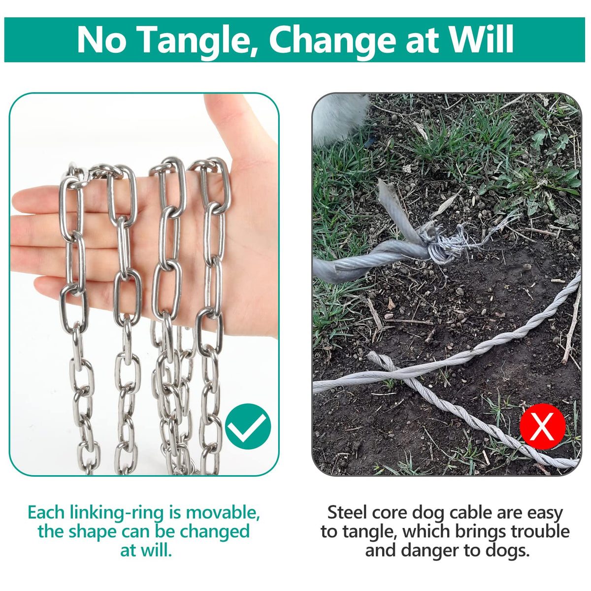 Tresbro Heavy Duty Dog Chains For Outside, 15Ft Stainless Steel Tie Out Cable With Swivel Hook For Large Medium Dogs, Metal Chew
