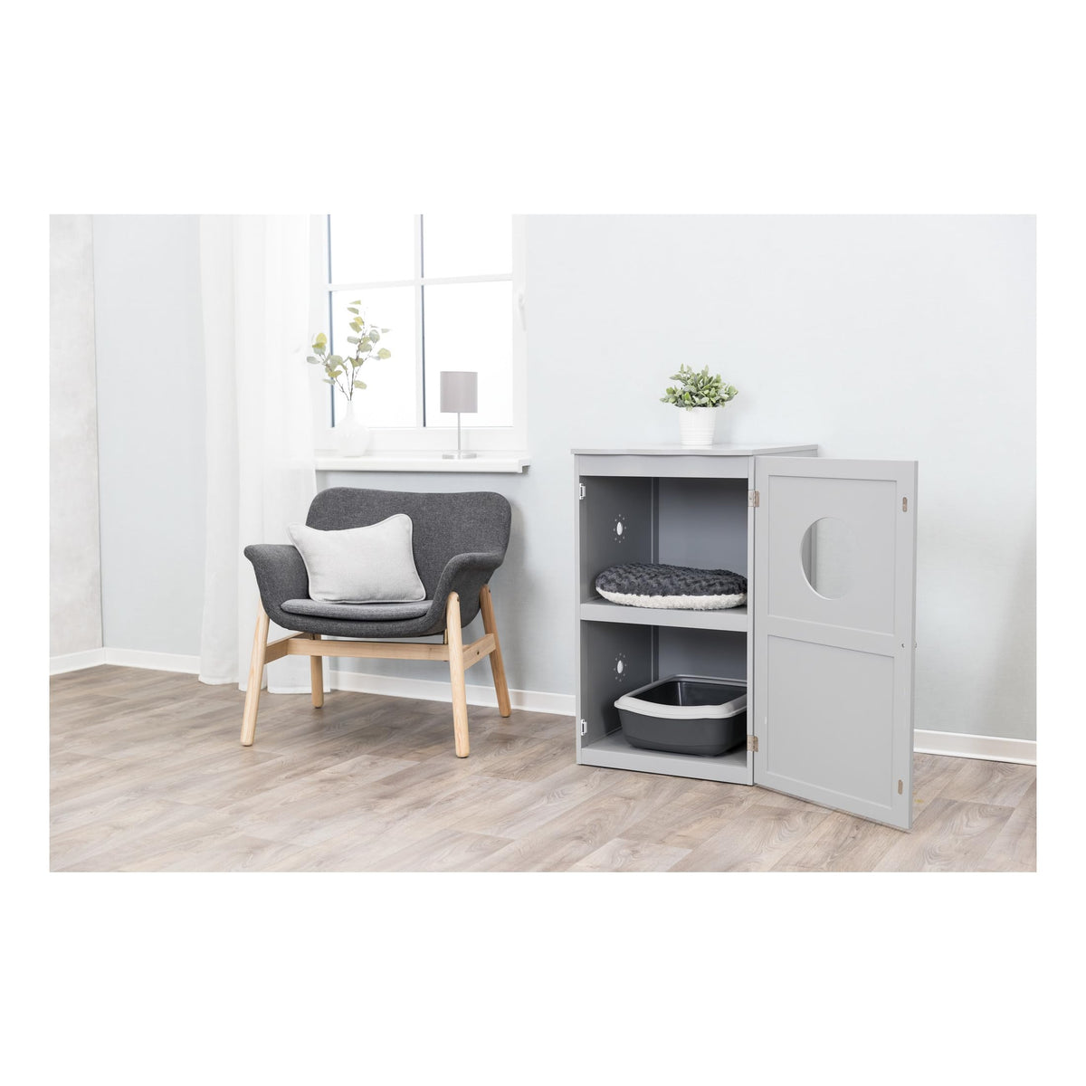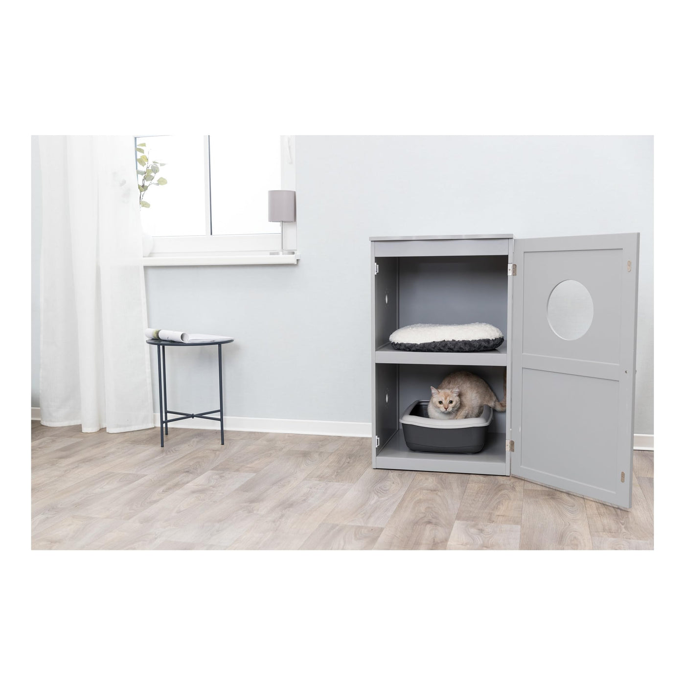 Trixie 2 Story Furniture Litter Box Enclosure (Gray), Hidden Litter Box For Cats, Double Layer, Big Front Door For Easy Cleaning