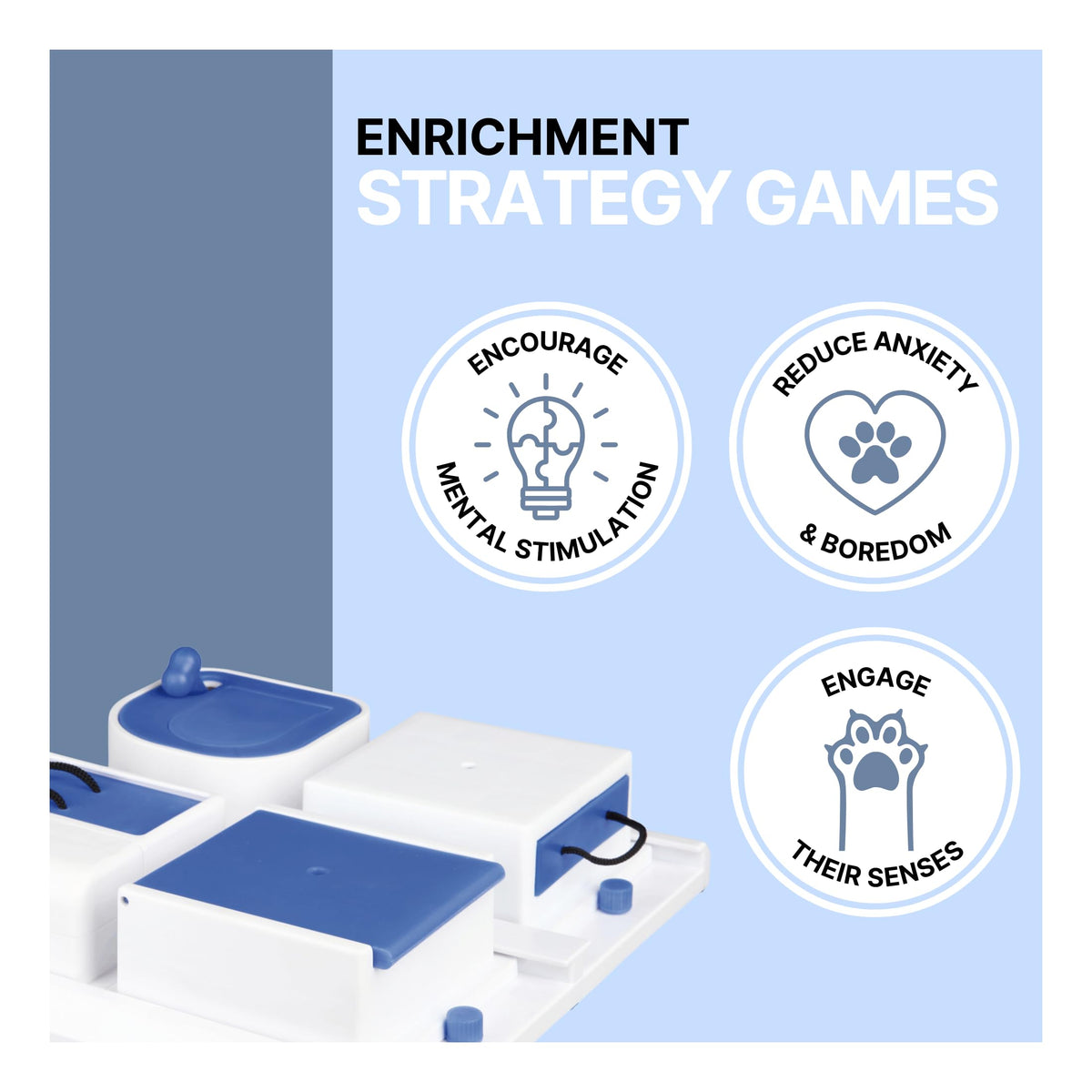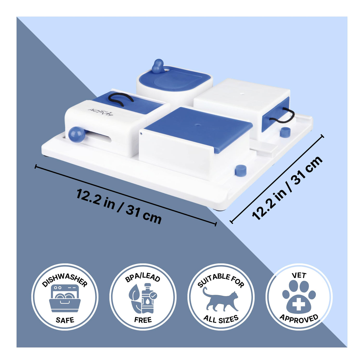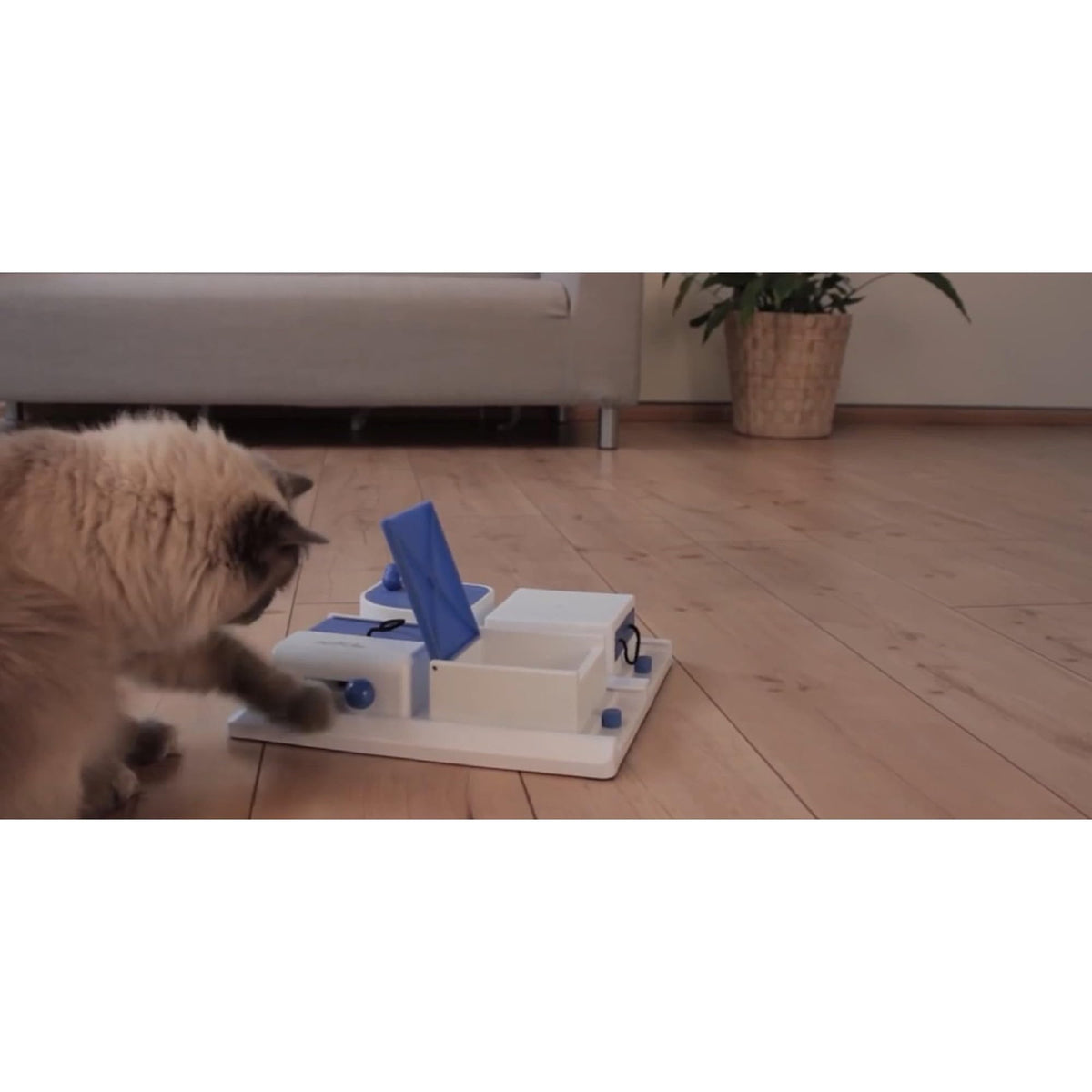 The TRIXIE Cat Activity Poker Box includes 4 compartments that can be individually placed on a base to pique your cats curiosity. Our interactive cat puzzle challenges your kittys senses through four enrichment exercises. Designed so each compartment has a different challenge to master. The combination of intelligent games will provide your cat with mental stimulation they crave. Your cat will love the hunt and the well-earned tasty rewards. You control the level of difficulty, therefore, making this game perfect for all cats and activity levels. A booklet with tips and tricks is included.