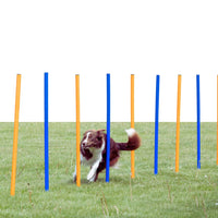 TRIXIE accompanies you and your pet from birth to senior age with suitable products – at home, when traveling, during play and sport. Take your dog’s agility training to the next level with the TRIXIE agility slalom poles. The dog agility weave poles are perfect for outdoor use and can be easily set up in your backyard or at your local dog park. Our dog obstacle course equipment includes 12 weave poles and an adjusting cord with scale, allowing you to customize the difficulty level for your dog. The TRIXIE agility poles are designed for versatility, offering multiple layout options like traditional slalom or slant weave, which keeps your dog's training sessions dynamic and engaging. The included carrying bag ensures that you can transport and store the equipment with ease. An additional booklet provides valuable training tips and tricks to help you and your dog get the most out of each session. In addition to slalom poles, TRIXIE offers a range of other dog training equipment, such as outdoor ramps, tunnels, and hurdles, allowing you to set up a comprehensive agility obstacle course.