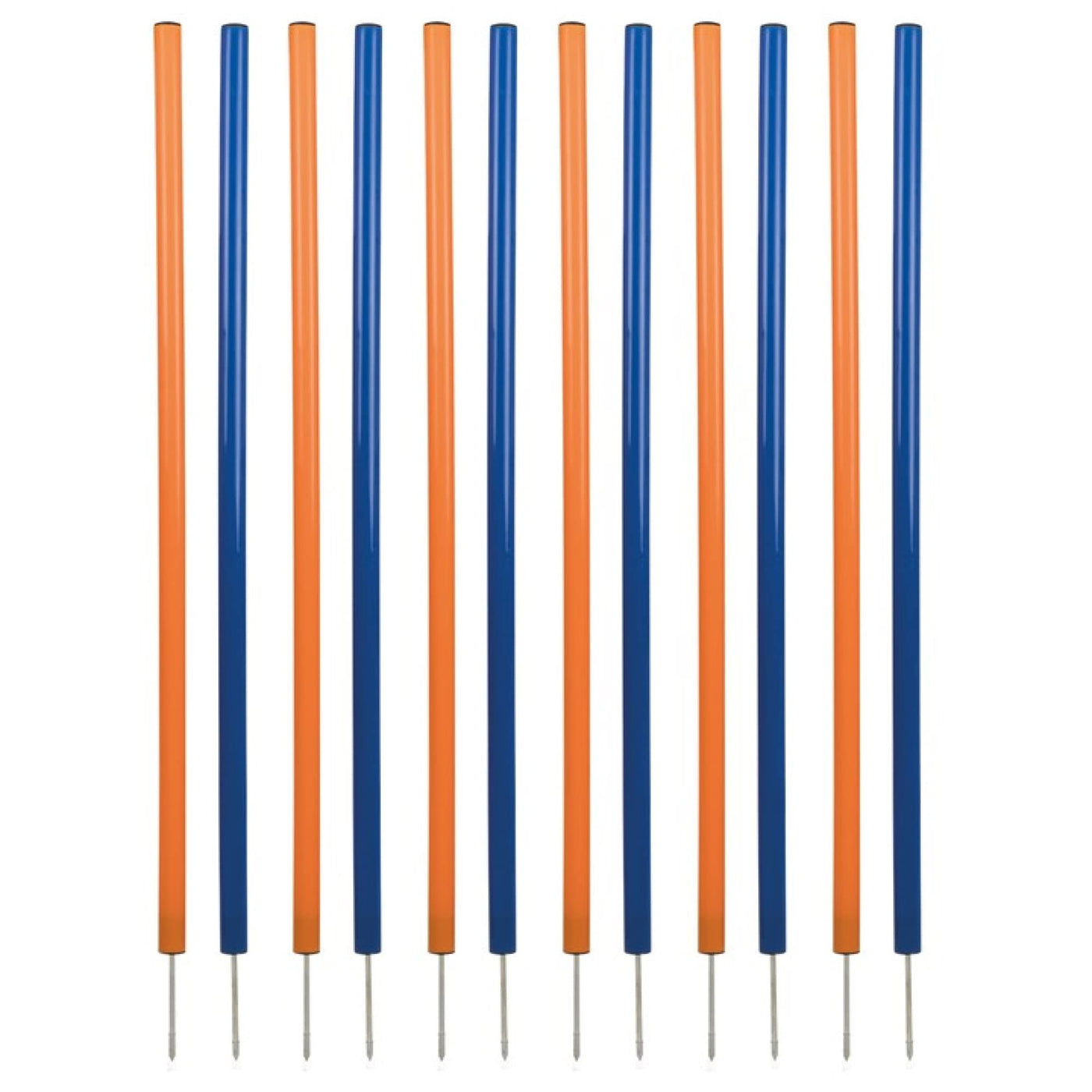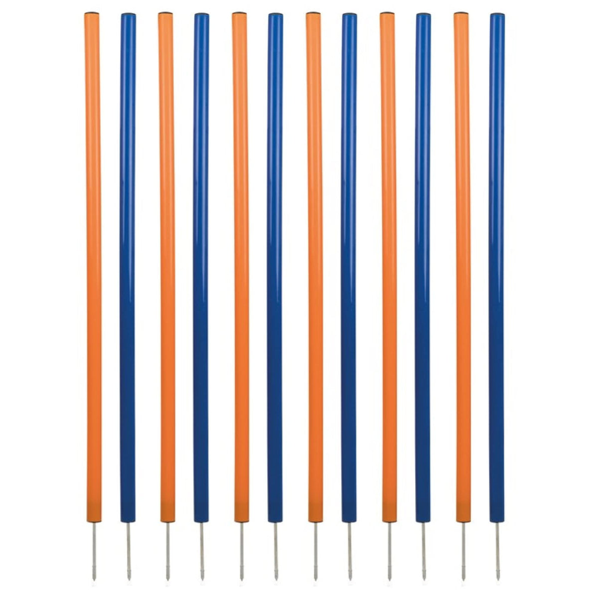 Q: What materials are the TRIXIE agility poles made of?A: The TRIXIE agility poles are made of durable plastic, ensuring they are lightweight yet sturdy enough to withstand outdoor use during agility training sessions.