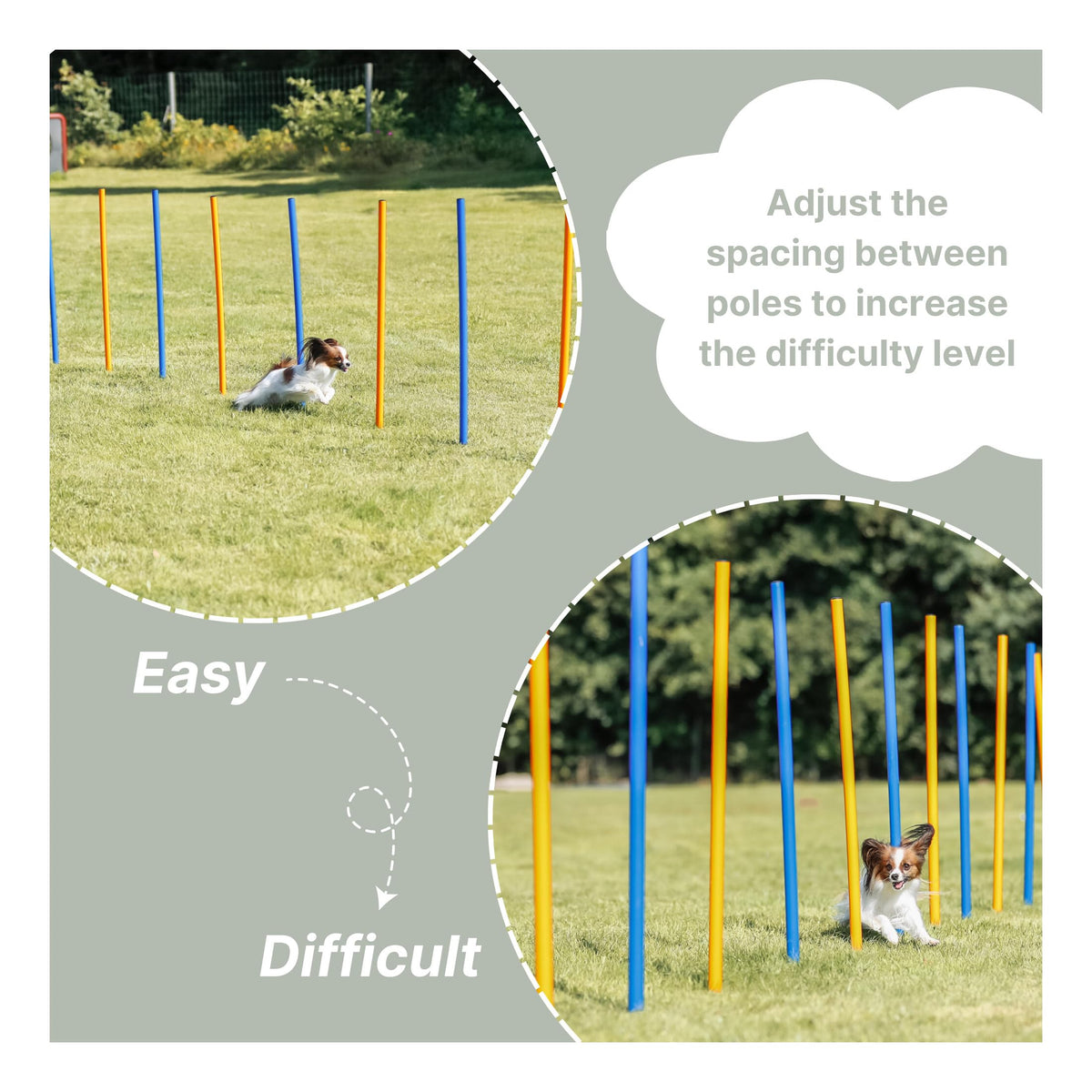 Q: Can the TRIXIE agility poles be used for both beginners and advanced dogs?A: Yes, the TRIXIE agility poles are versatile and suitable for both beginners and advanced dogs. The adjustable difficulty feature allows you to customize the training experience according to your dog's skill level.